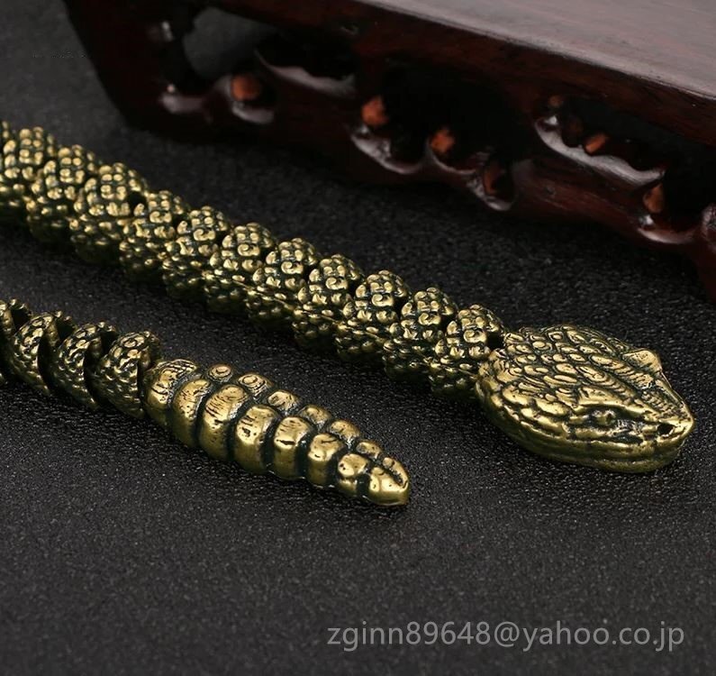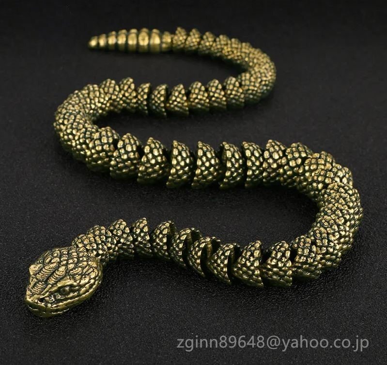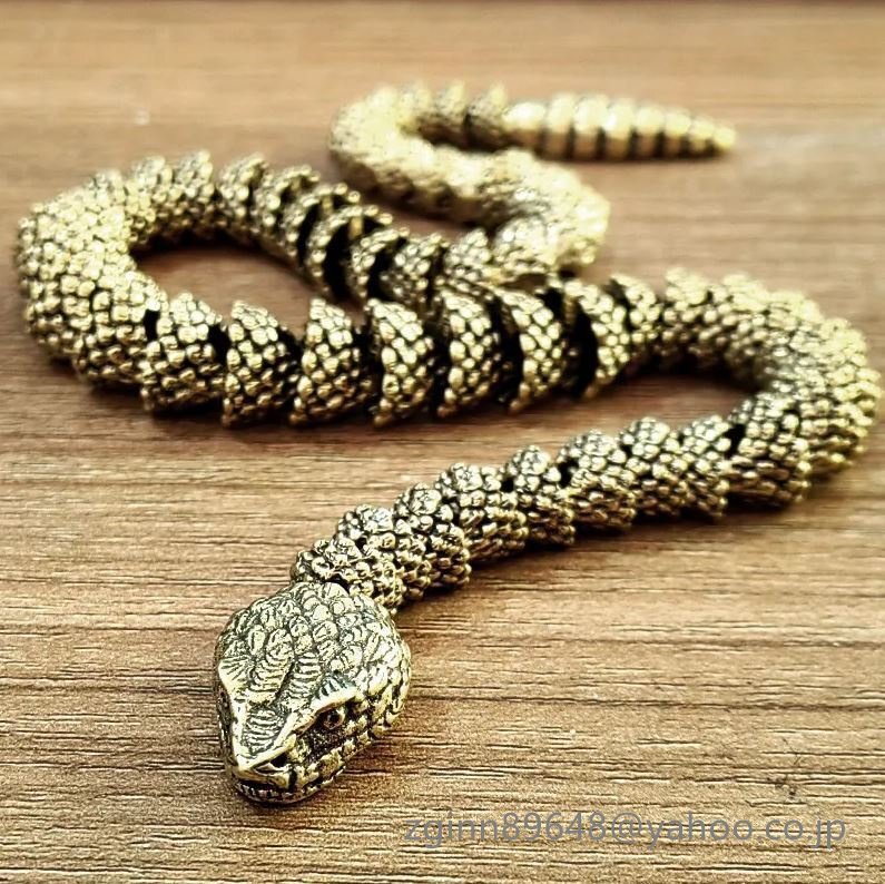 57g 全長40cm 可動 金 蛇 ゴールド マムシ ヘビ へび カラスヘビ シマヘビ 爬虫類 置物 置き物 床の間 机 飾り 真鍮 金属 銅製 銅