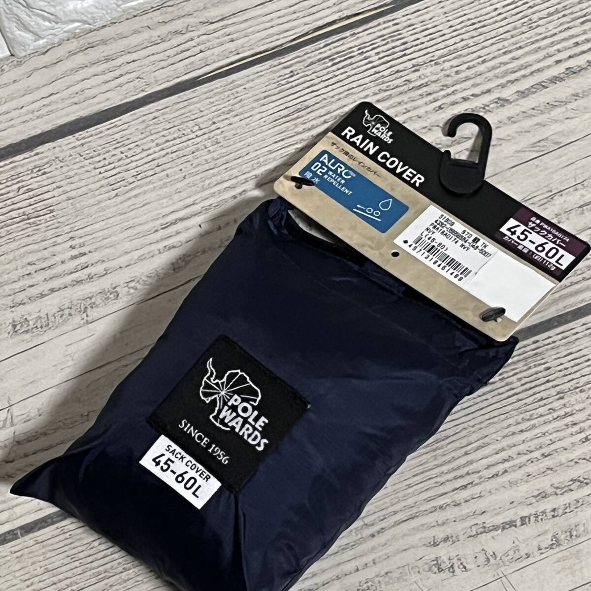 ★ POLE WARDS (ポールワーズ) ★ ザック用のレインカバー 紺色 45~60L 撥水 雨対策 リュックカバー リュックサック (タグ付き新品未使用)