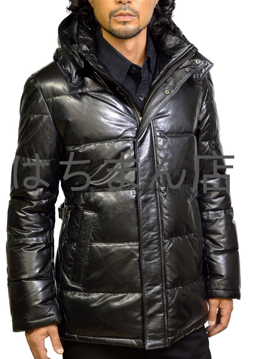 ダウンコート メンズ レザーコート レザージャケット 革ジャン ダウンジャケット 本革 レザーダウンジャケット 秋冬 ブラック 黒 M-3XL
