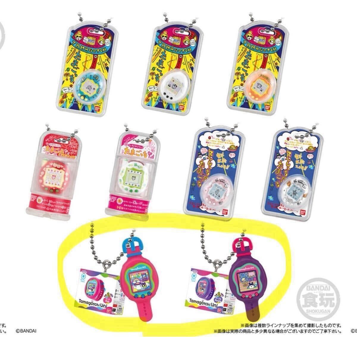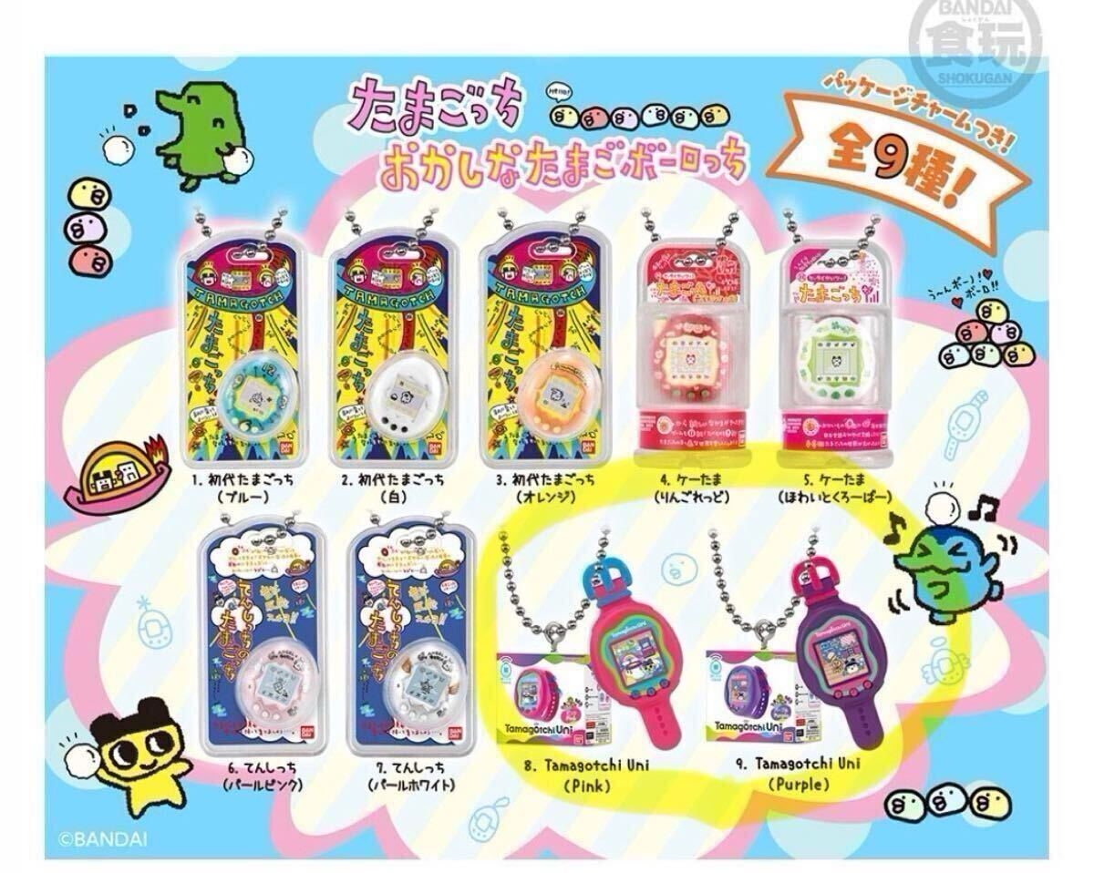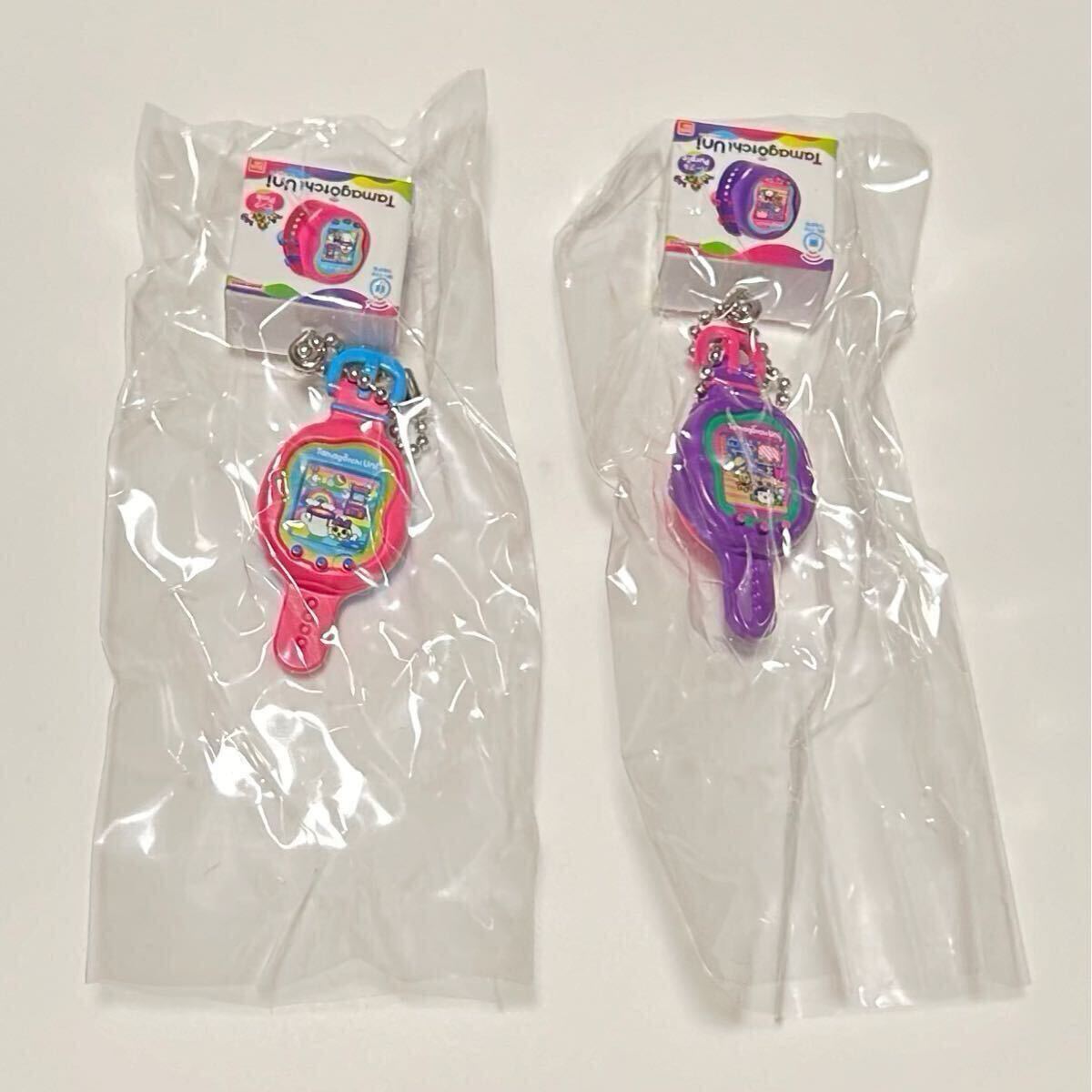 おかしなたまごボーロっち ミニチュア キーホルダーストラップのたまごっちユニ ピンク&パープル2種セットです。