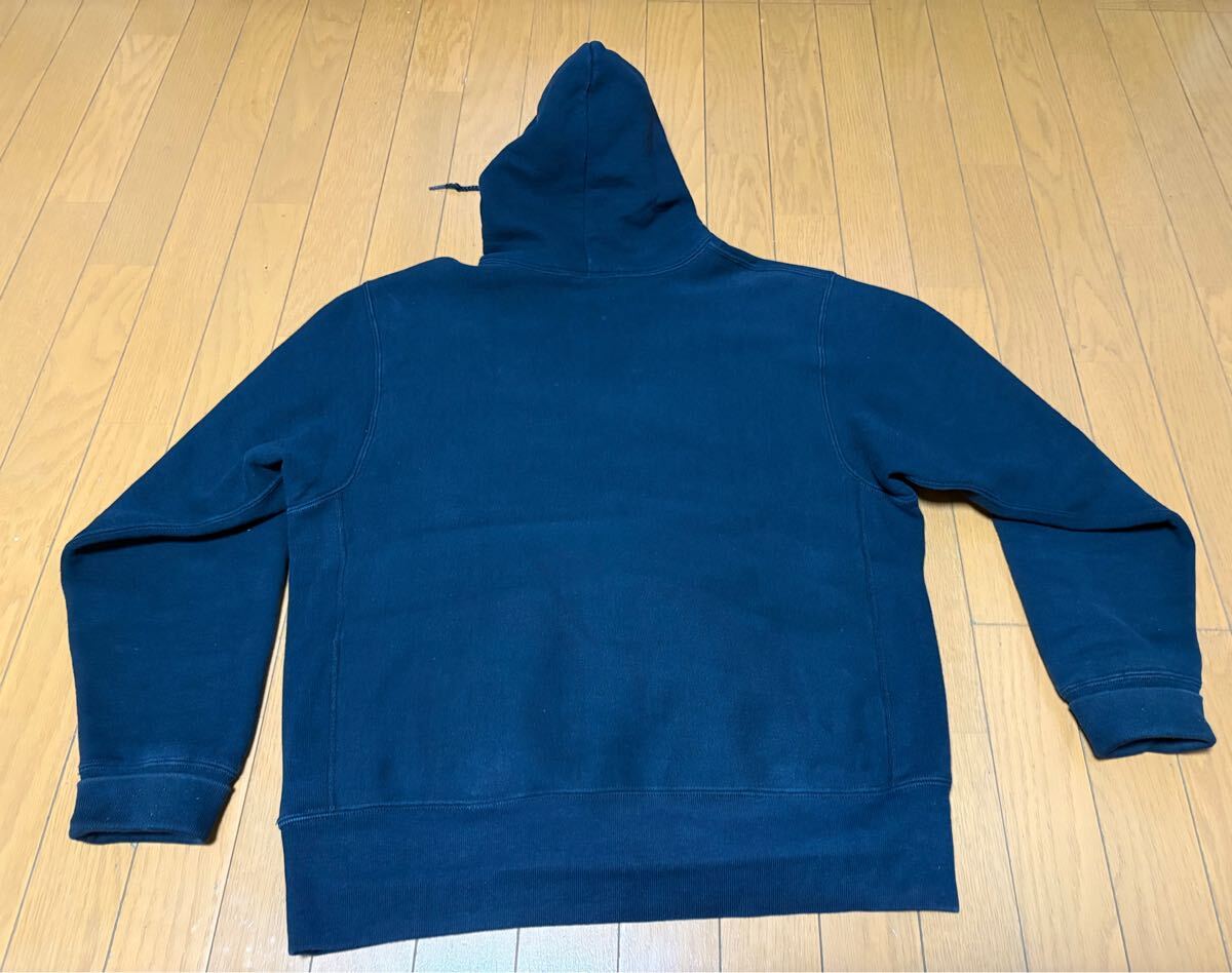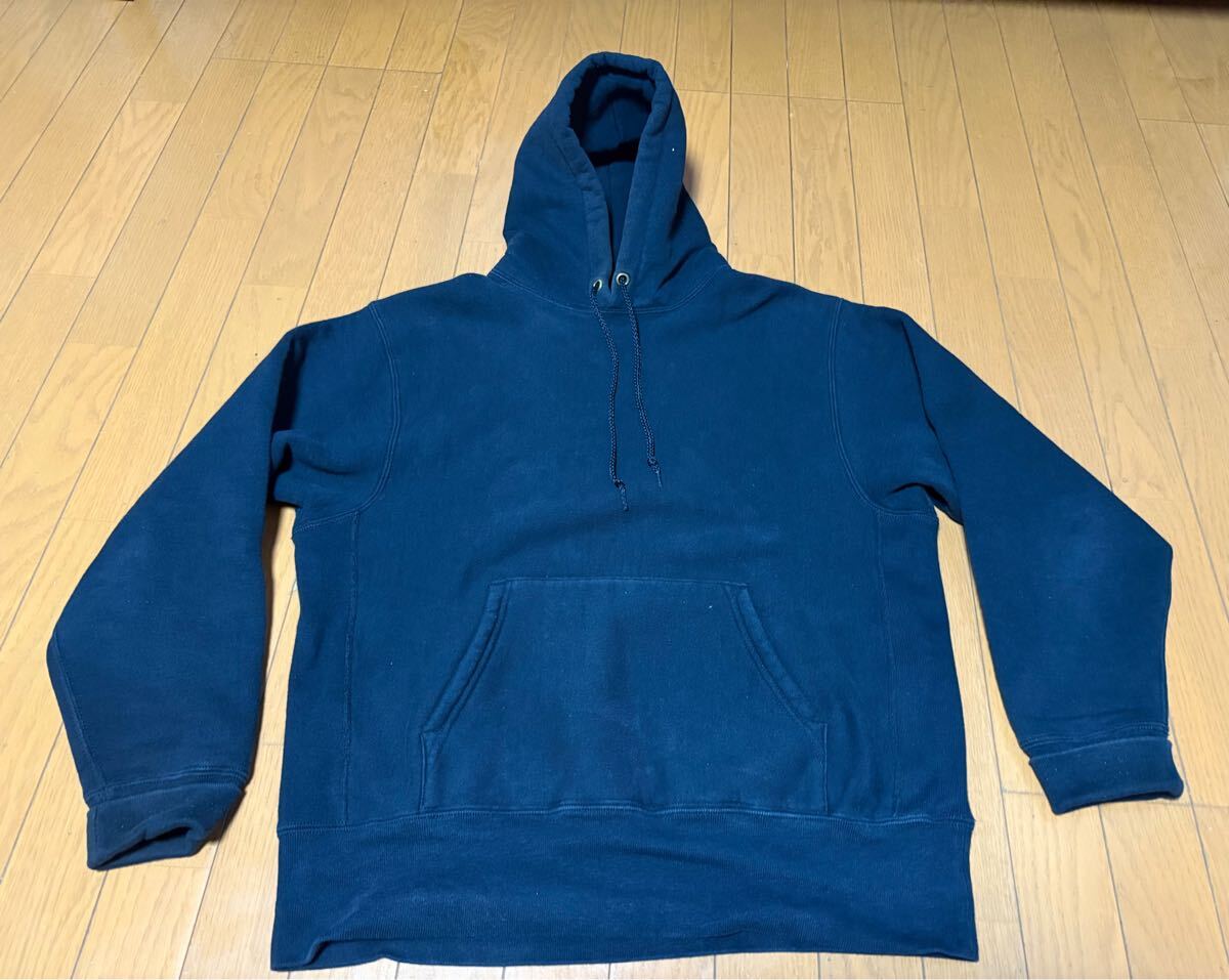 アクセスありがとうございます。キャンバーのプルオーバーフード232です。。同社200番台はクロスニットと呼ばれるシリーズです。一般的なスウェットは縦編みで、縦方向の縮みが強いのですが、これを防ぐ為に生地を横方向で採用しています。サイドパネルに伸縮性のあるリブ素材を採用する事で、横方向の型崩れを防いでいます。12オンスのヘビーウエイトで、ガシガシとした武骨な生地感はキャンバーならではです。裏側は起毛なので、着心地は抜群です。 フードは存在感のある二枚仕立てで、メタルのハトメが施されたドローコード入りです。お腹はベーシックなカンガルーポケットです。長めの袖、裾リブもクラシカルな仕様です。形はゆったり目でアームも太く、オーセンティックなシルエットとなっています。もちろん生産は米国自社工場です。非常にしっかりとした作りで、長く愛用頂けます。サイズ表記はMサイズです。目安として、その寸法は肩幅51cm、身幅59cm、着丈66cm袖丈61cm(リブを折り返して)となっています。ユーズドで購入してますので使用感があります。若干、色落ちもあります。写真より判断ください。発送時についた畳じわ等がつくことがございます。これが味だと思っていただける方に入札していただきたく思います。ベーシックなデザインなので、飽きがこなくてよいのではないでしょうか。一応、古着なのでよろしくお願いします。質問等遠慮なくメールしてくださいね。