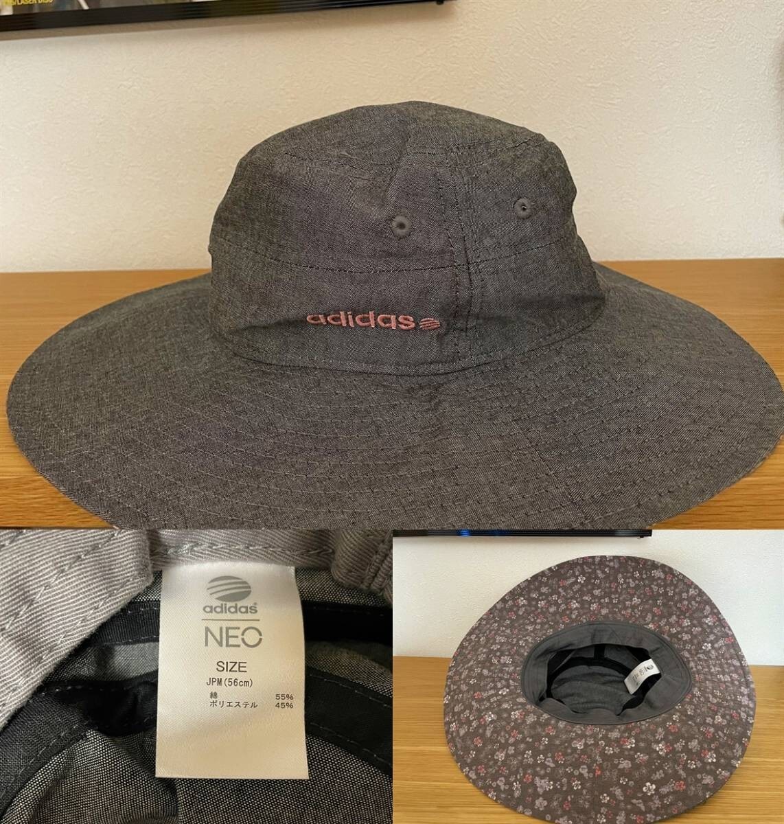 【激安1点のみ 国内正規品】adidas neo アディダス ネオ サマー ハット コットン ポリエステル 帽子 56cm グレー系 ツバ裏 花柄 USED
