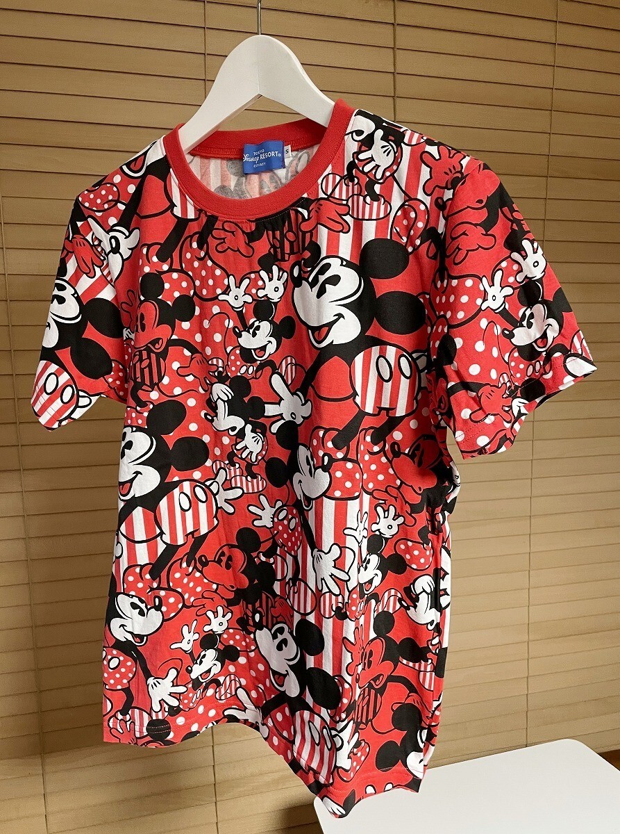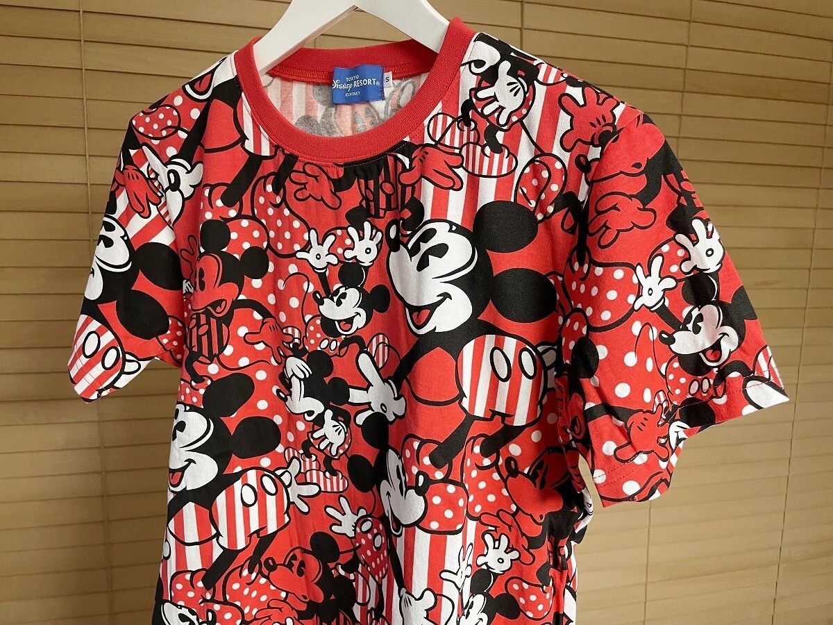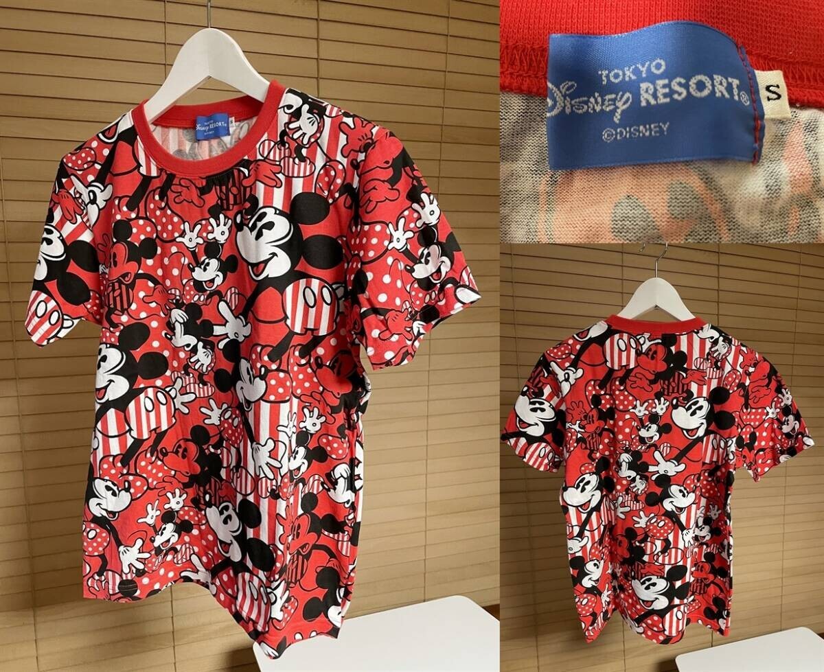 【激安1点のみ 国内正規品】東京ディズニーリゾート Disney RESORT 限定 Mickey Mouse ミッキーマウス 総柄 プリント 半袖 Tシャツ S レッド系