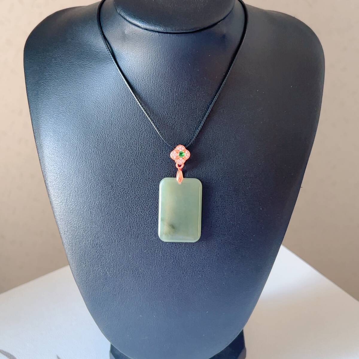 ◇和田玉◇翡翠・ヒスイ◇ネックレス ペンダント◇無事プレート(無事牌)お守り◇天然石◇パワーストーン◇巾着袋付◇プレゼントに034P12297