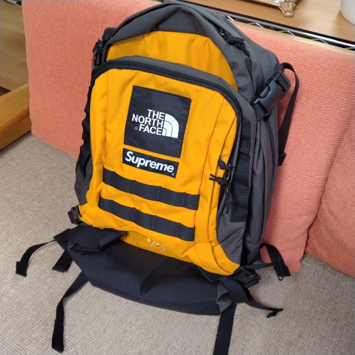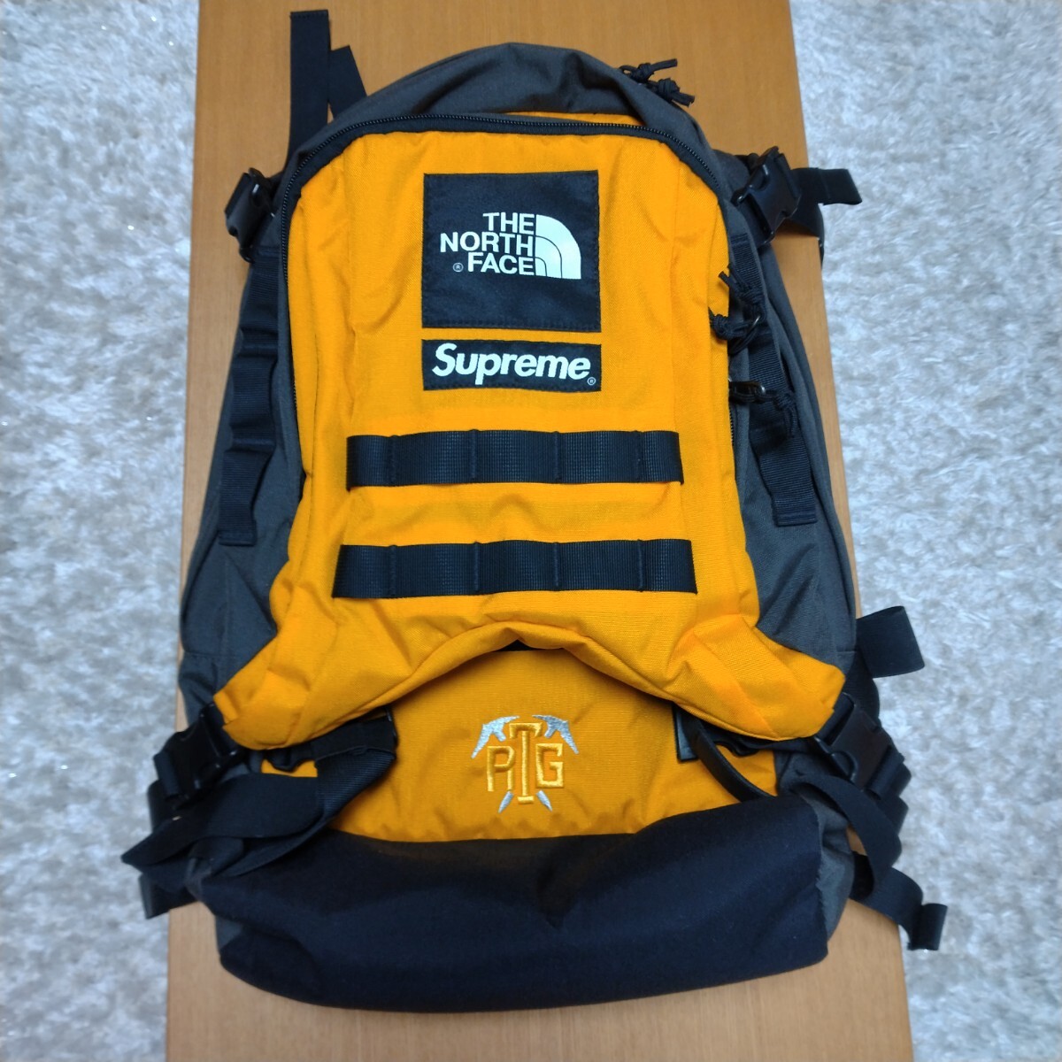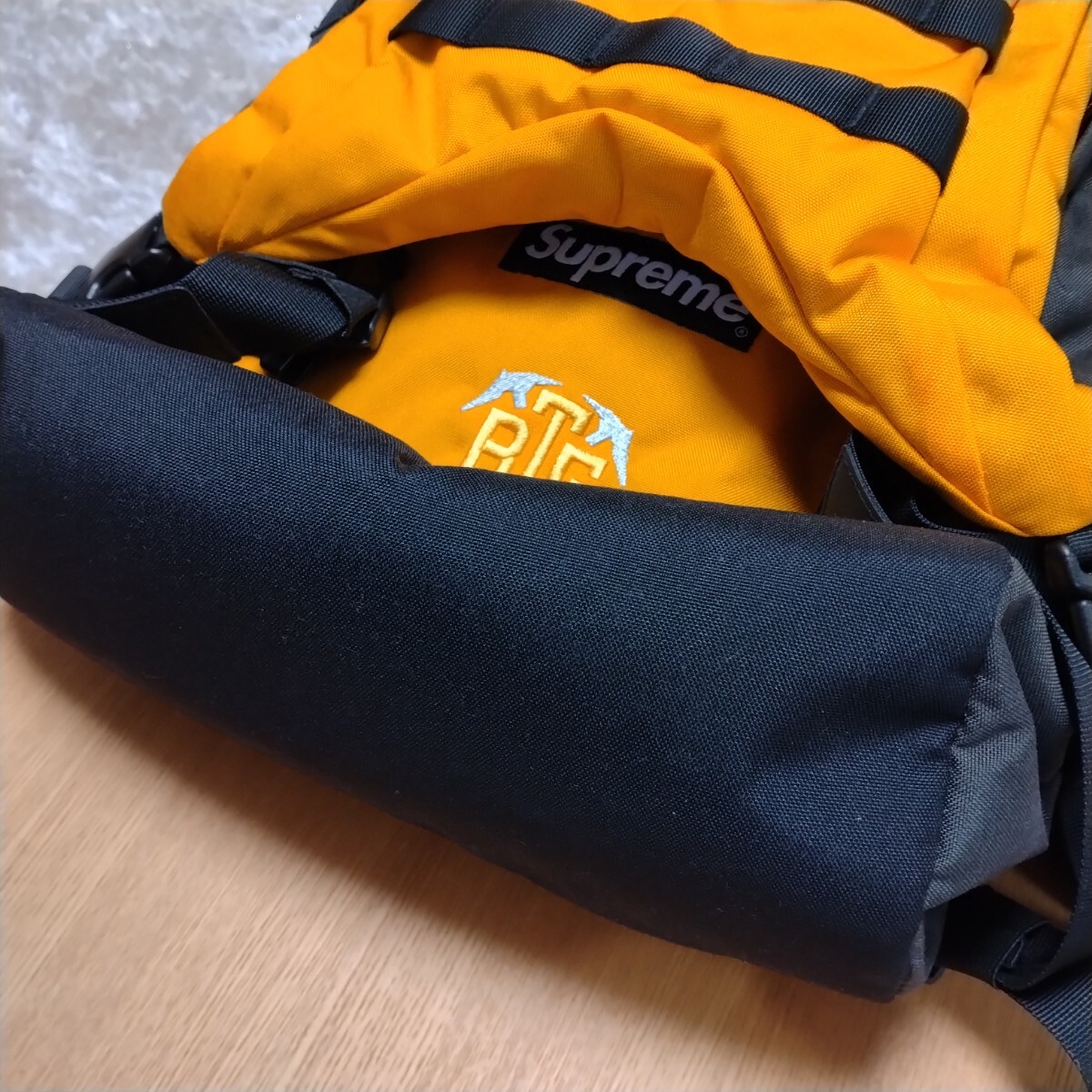 バックパックには両ブランドのロゴパッチとRTGのロゴ刺繍、フロントコンパートメントには両ブランドのロゴパッチが付きます