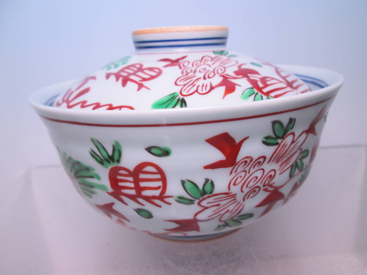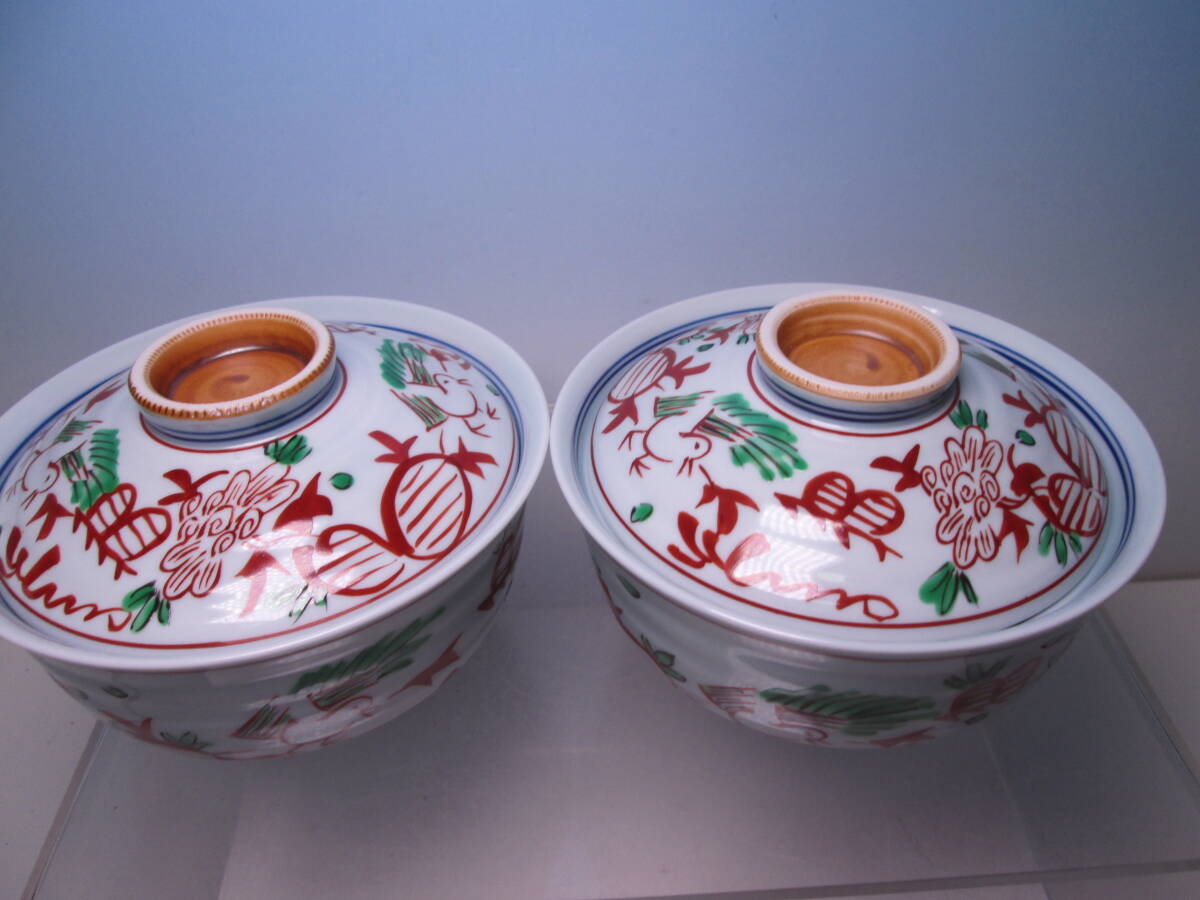 ☆お料理屋さんの器 光玉造 色絵 花鳥文 蓋向付 二客 箱無 煮物碗/懐石/割烹/日本料理