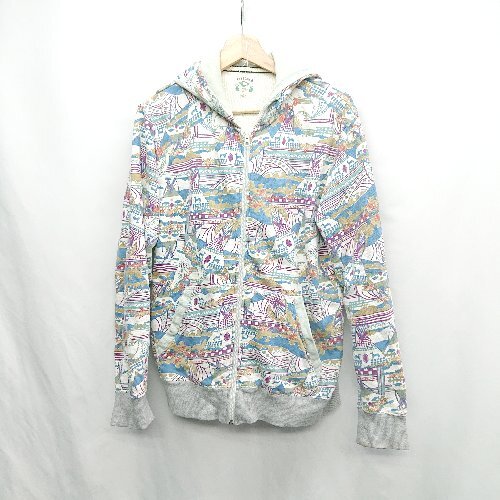 ◇ ⊇ titicaca チチカカ 総柄 長袖 パーカー サイズM ブルー系 レディース E
