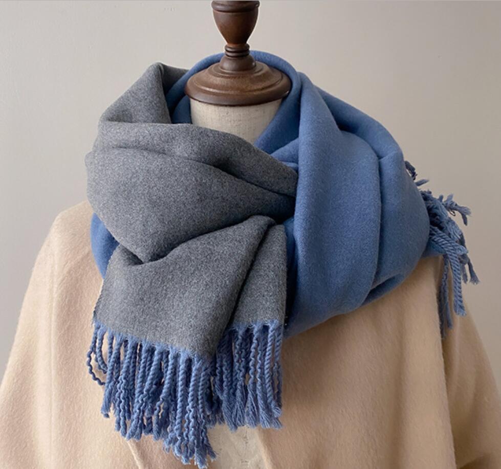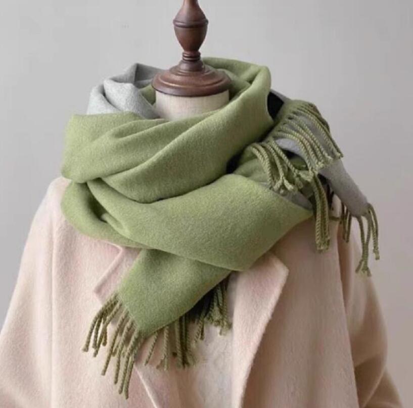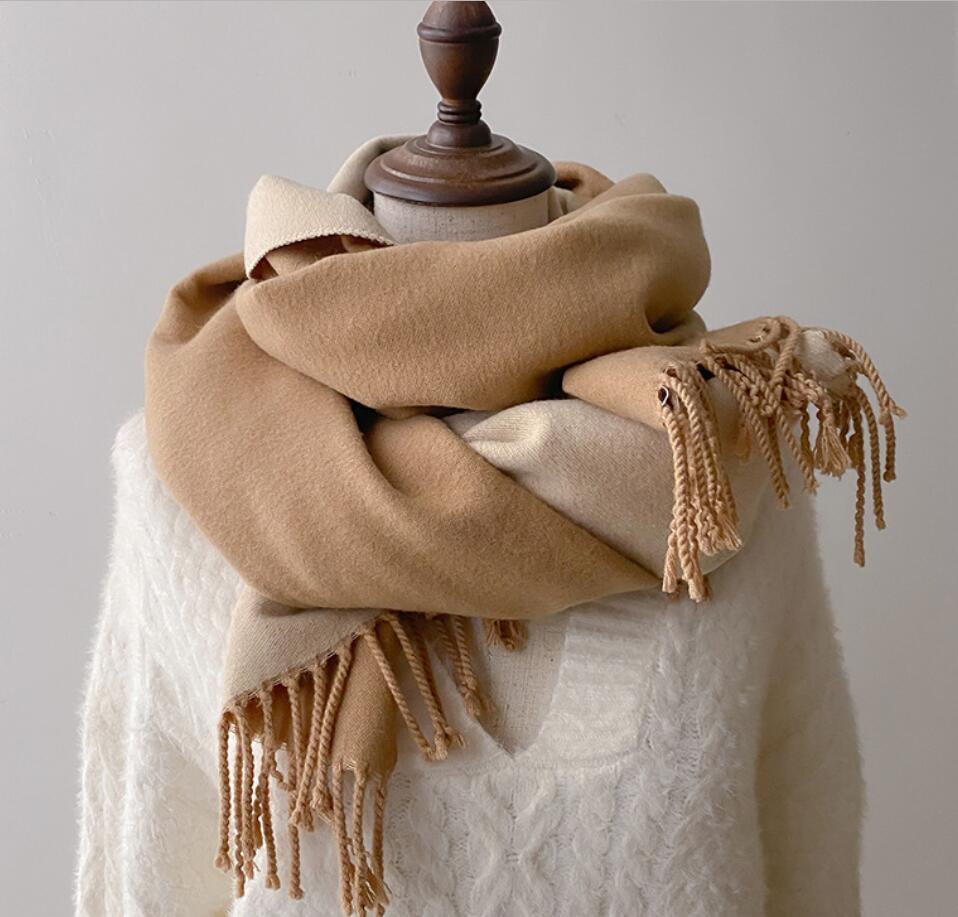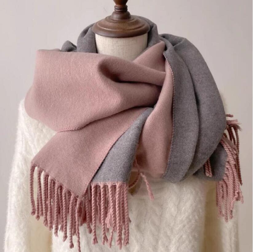 秋冬新作~上品 大判 マルチチェック ボリュームフリンジマフラー 暖かい 厚手 大人 きれいめ 配色 オシャレ~ オレンジ&紫