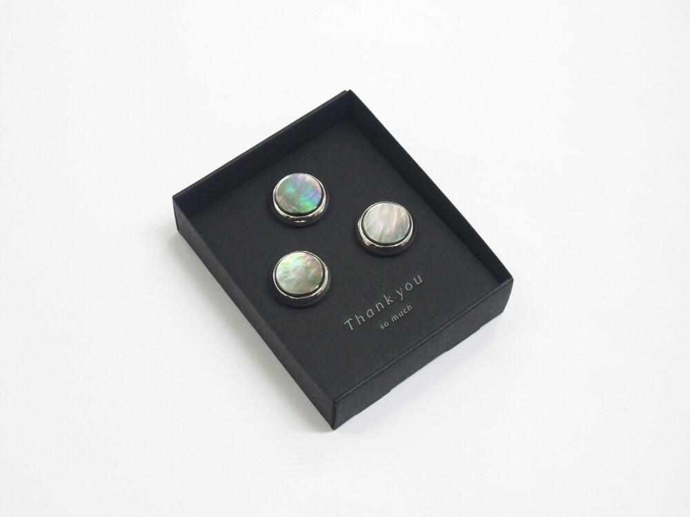 *貝ボタンは天然素材のため、色味、模様などは1個1個異なりますのであらかじめご了承ください。