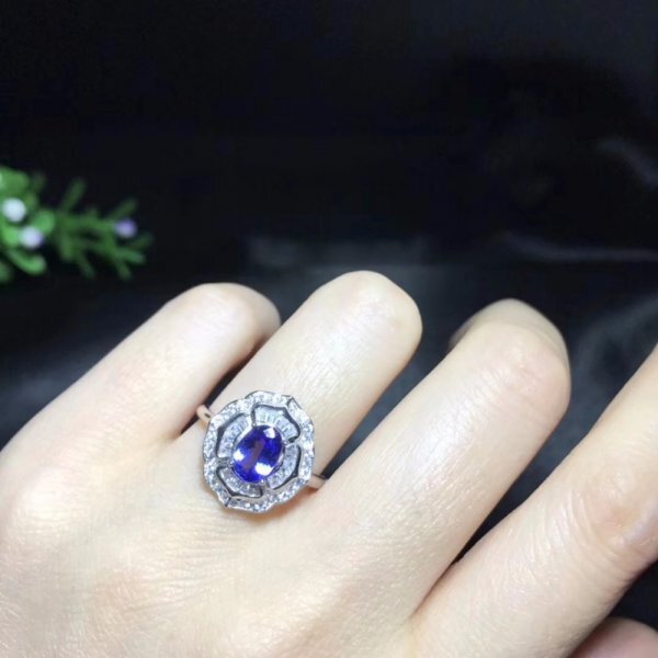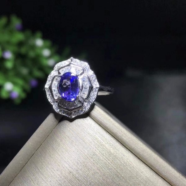 天然タンザナイトリング、5×7mm、925シルバー、豪華なスタイル、鉱山の天然石