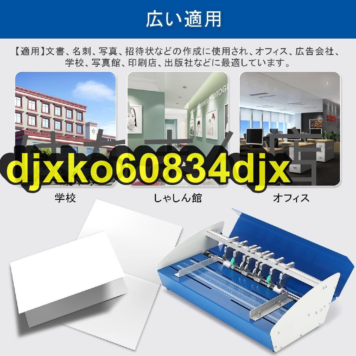 状態:新品未使用 【機能】名刺、写真、グリーティングカード、カラーリングページ、カバーのための1つまたは複数のインデントを1回で作成します。 折り目も充実しており、自動紙折ることも手間を省き、素早く簡単にできます。 【材質】全金属構造の厚い壁板、精密で太い主軸の同心度は高くて、変形しにくくて、耐久性は良いです。 【調節可能】プレスホイールと押し込み圧力の人間的な設計により、押し込み位置を任意に調整するのがより便利になります。インデントの幅は調整可能です。 さまざまな紙のニーズに合わせて簡単に切り替えることができます。 【安全便利】クラムシェルデザイン、ユニークなナイフホルダー、揺れがなく、分解と任意の組み合わせが簡単です。 【適用と付属品】文書、名刺、写真、招待状などの作成に使用され、オフィス、広告会社、学校、写真館、印刷店、出版社などに最適しています。ゴム輪プレス紙2セット、ダッシュナイフ1セット、折り込みナイフ2セット、スリットナイフ1セット+折り込みナイフ2セット、合計8セットのナイフが付属しています。