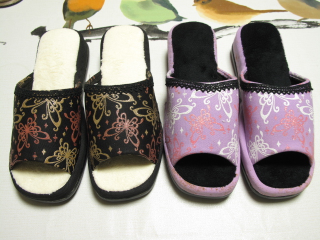 新品 4足セット レディース スリッパ 蝶柄 ラメ 黒 紫 花柄 ベージュ 赤色