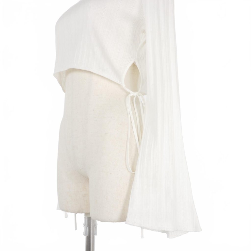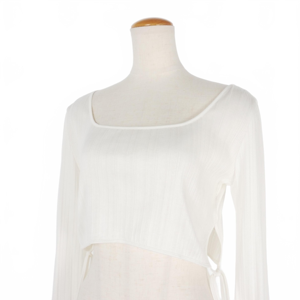 マメクロゴウチ Mame Kurogouchi 24SS ランダムリブ クロップド トップス カットソー 2 白 ホワイト MM24SS-JS051 レディース