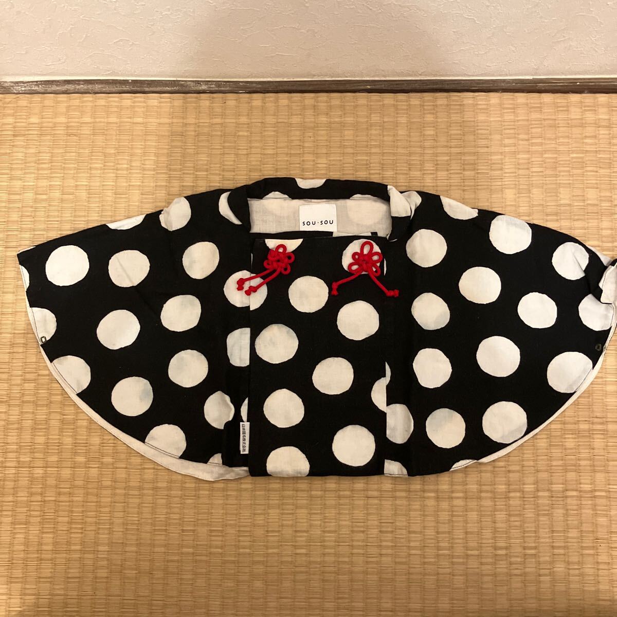 ご覧いただきありがとうございます。sou.souの被布ポンチョです。実店舗へ行けば何か商品はありますが、希望のテキスタイルが必ずあるわけではなく注文して暫く待って購入しました。数回着用しておりますが目立つ汚れなどなくまだまだお使いいただけると思います。横幅約64センチ、長さ約33センチです。