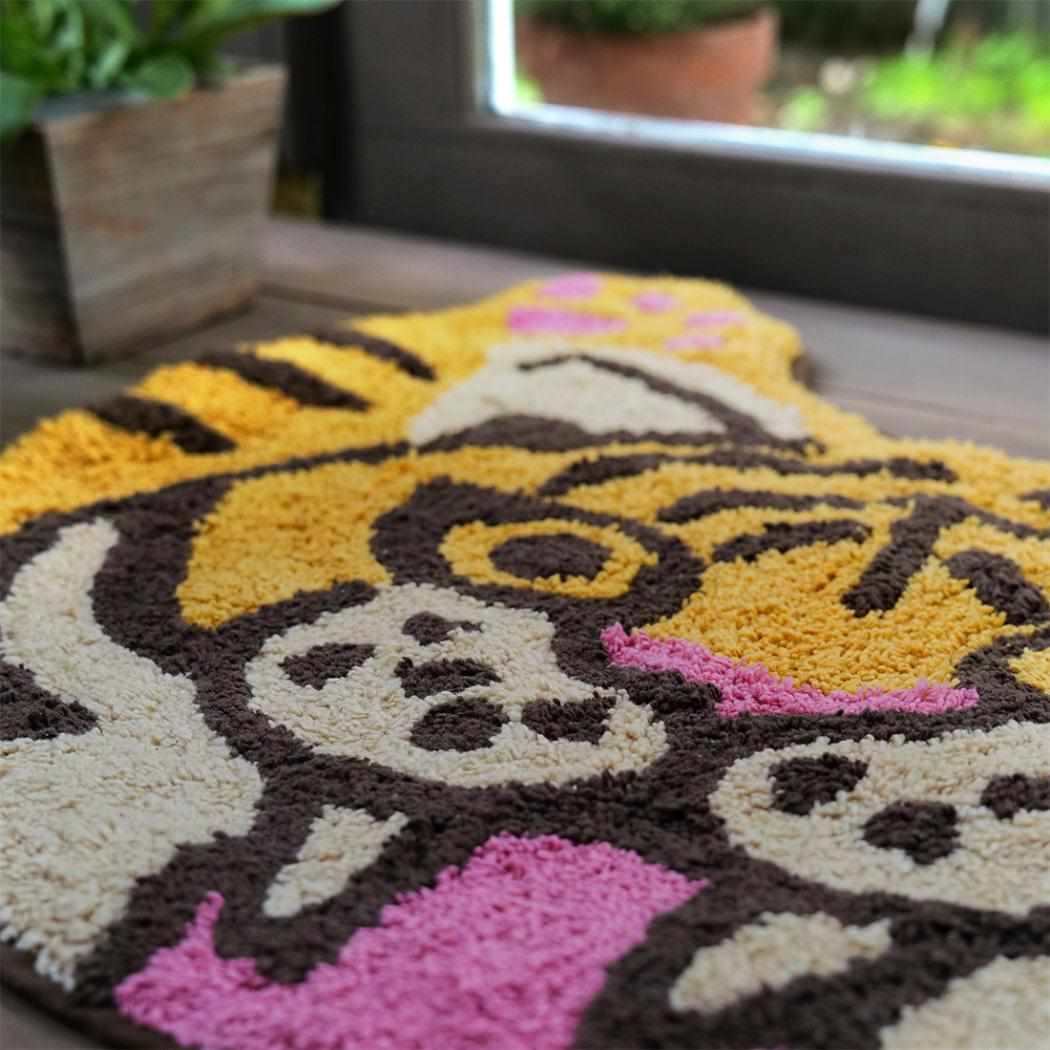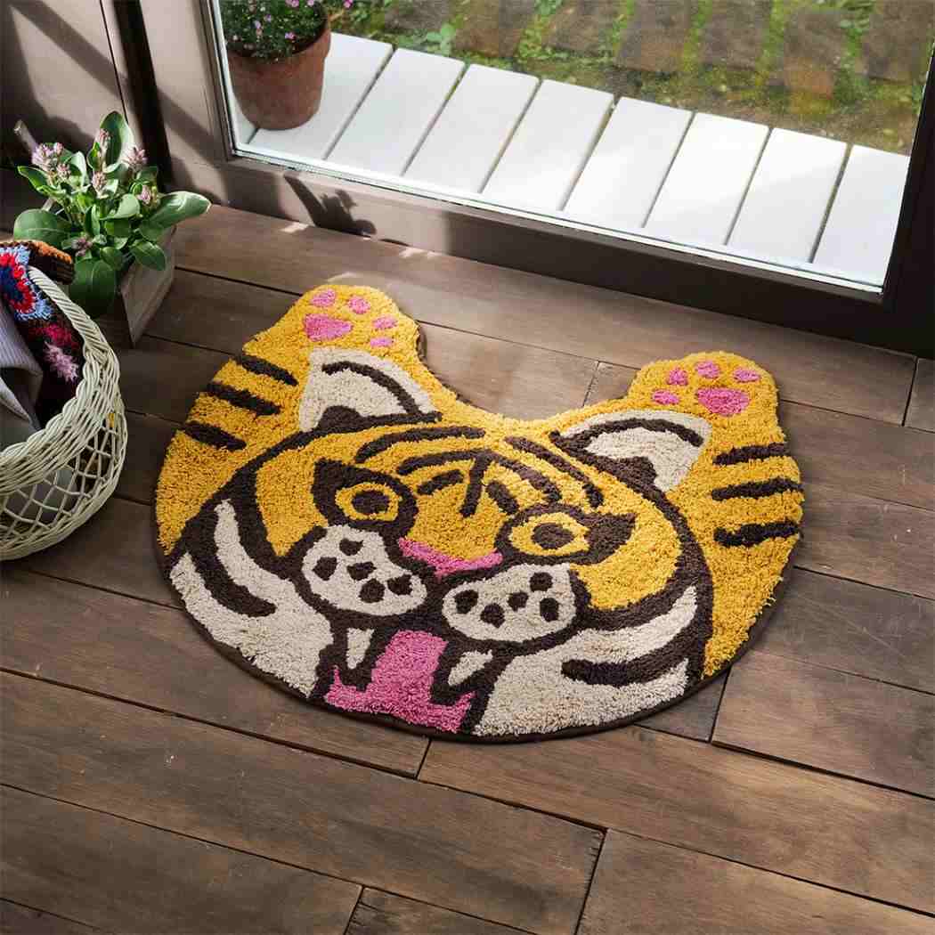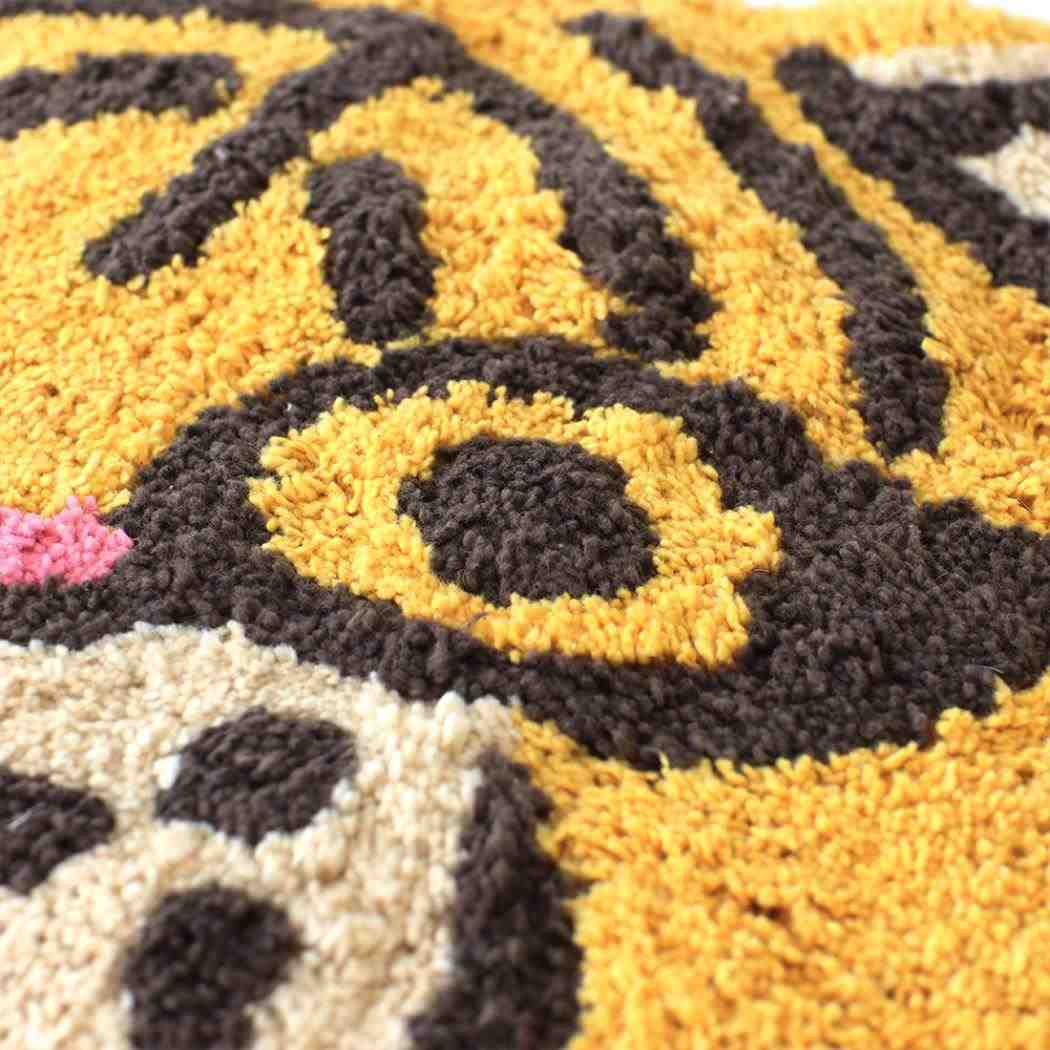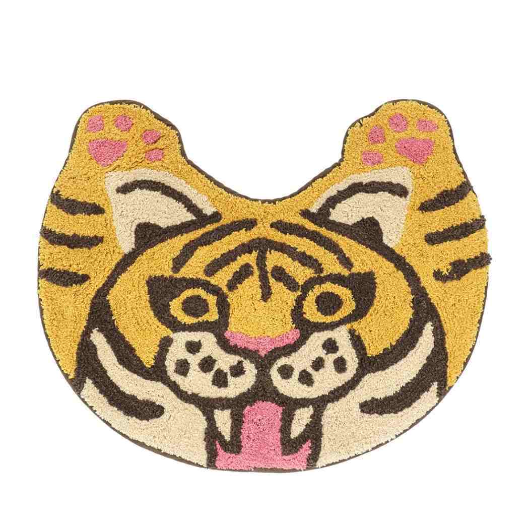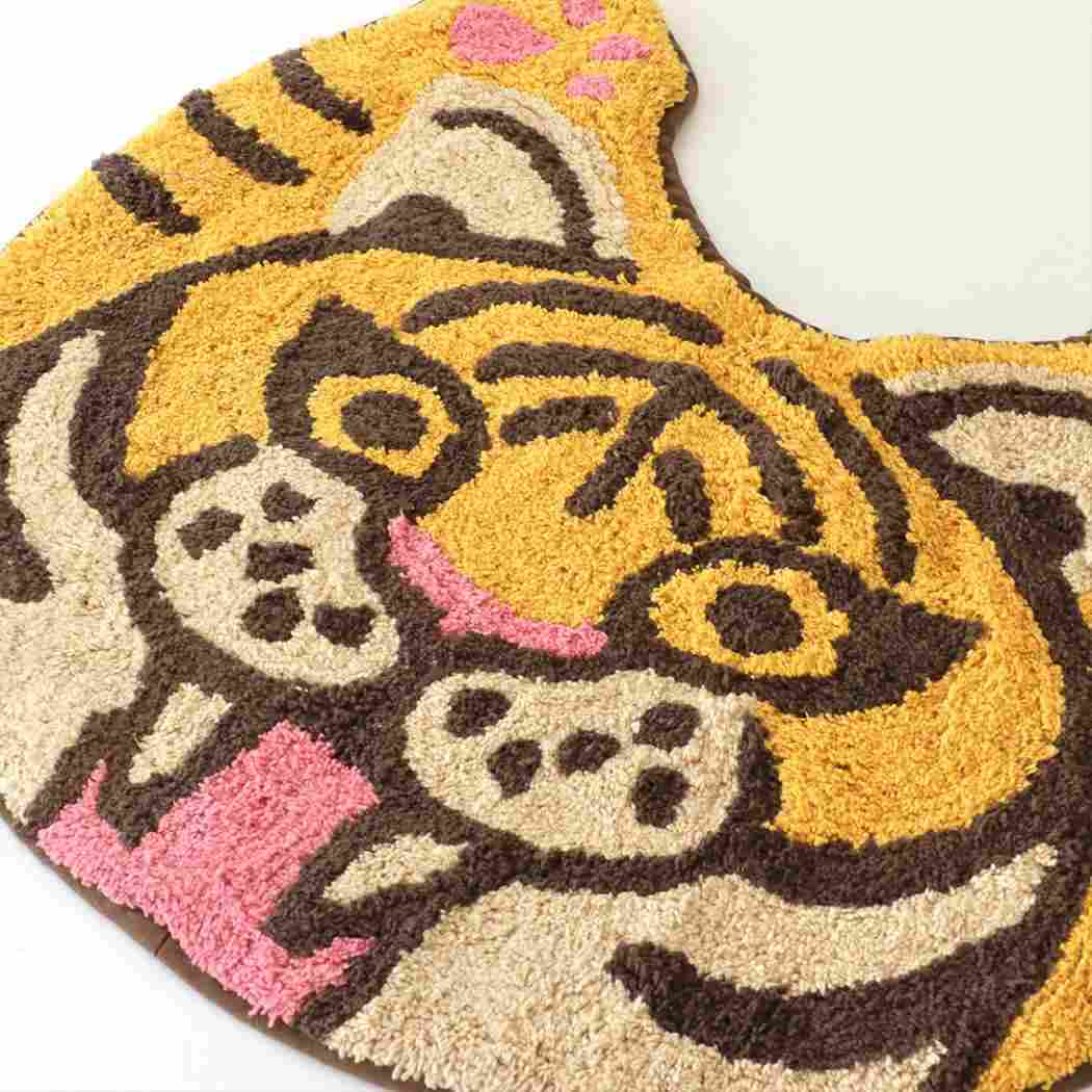 トラがバンザイをしているような可愛いマット お部屋はもちろんトイレマットとしてもお使いいただけます。両手を挙げてバンザイをしている姿と可愛らしい表情に癒されます。サイズ:約610x500mm素材:綿81%、ポリエステル10%、レーヨン5%、その他4%