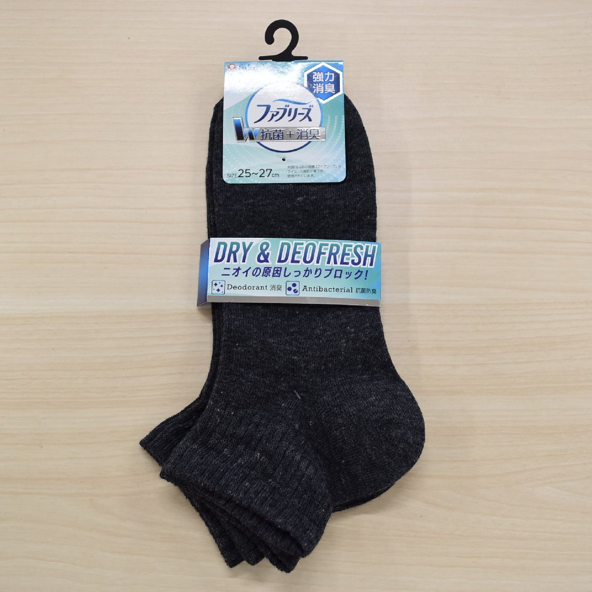 <新品> FUKUSUKE 靴下 2足組 ファブリーズ スニーカー丈 25~27cm グレー 27246W 革靴 強力消臭 ドライ 仕事 34