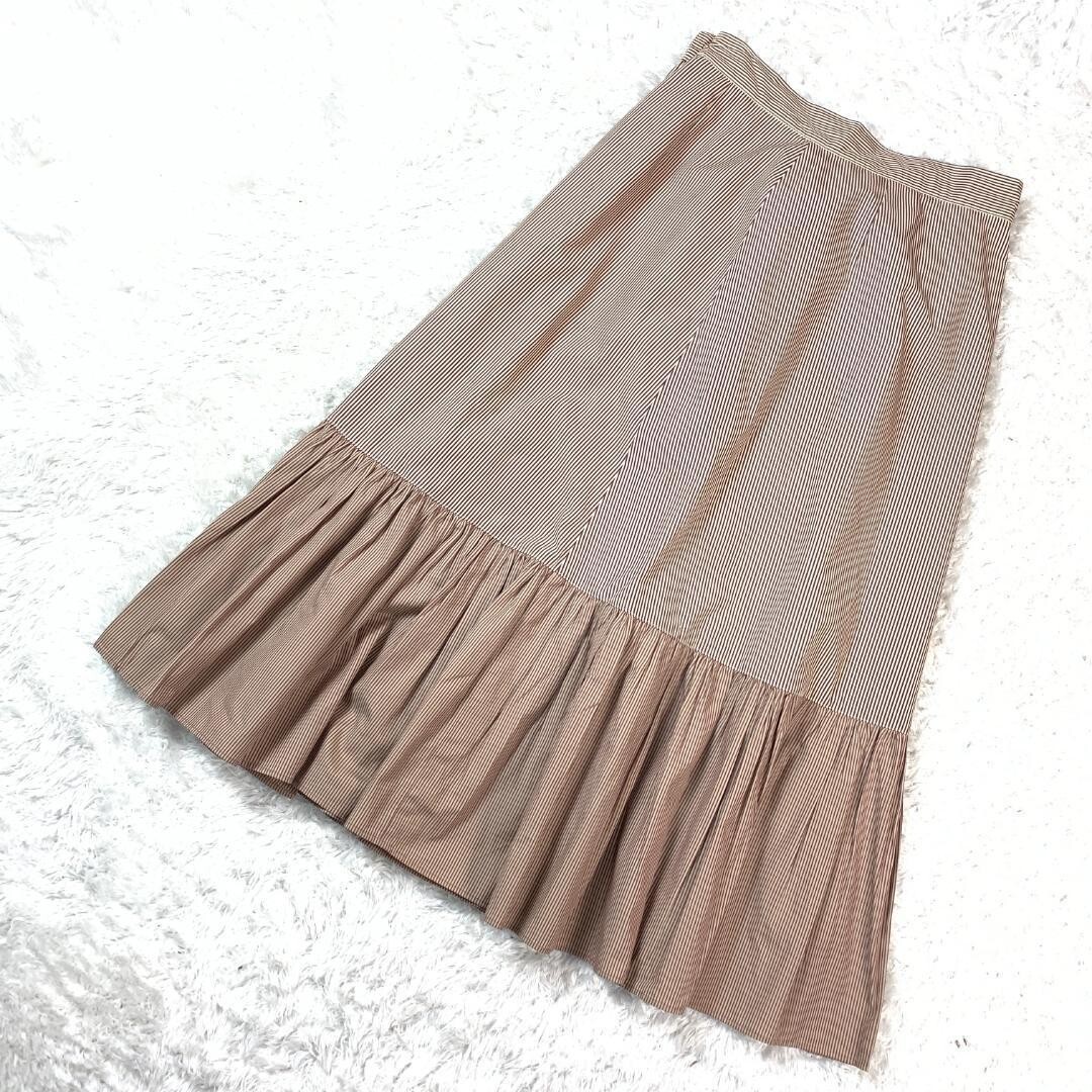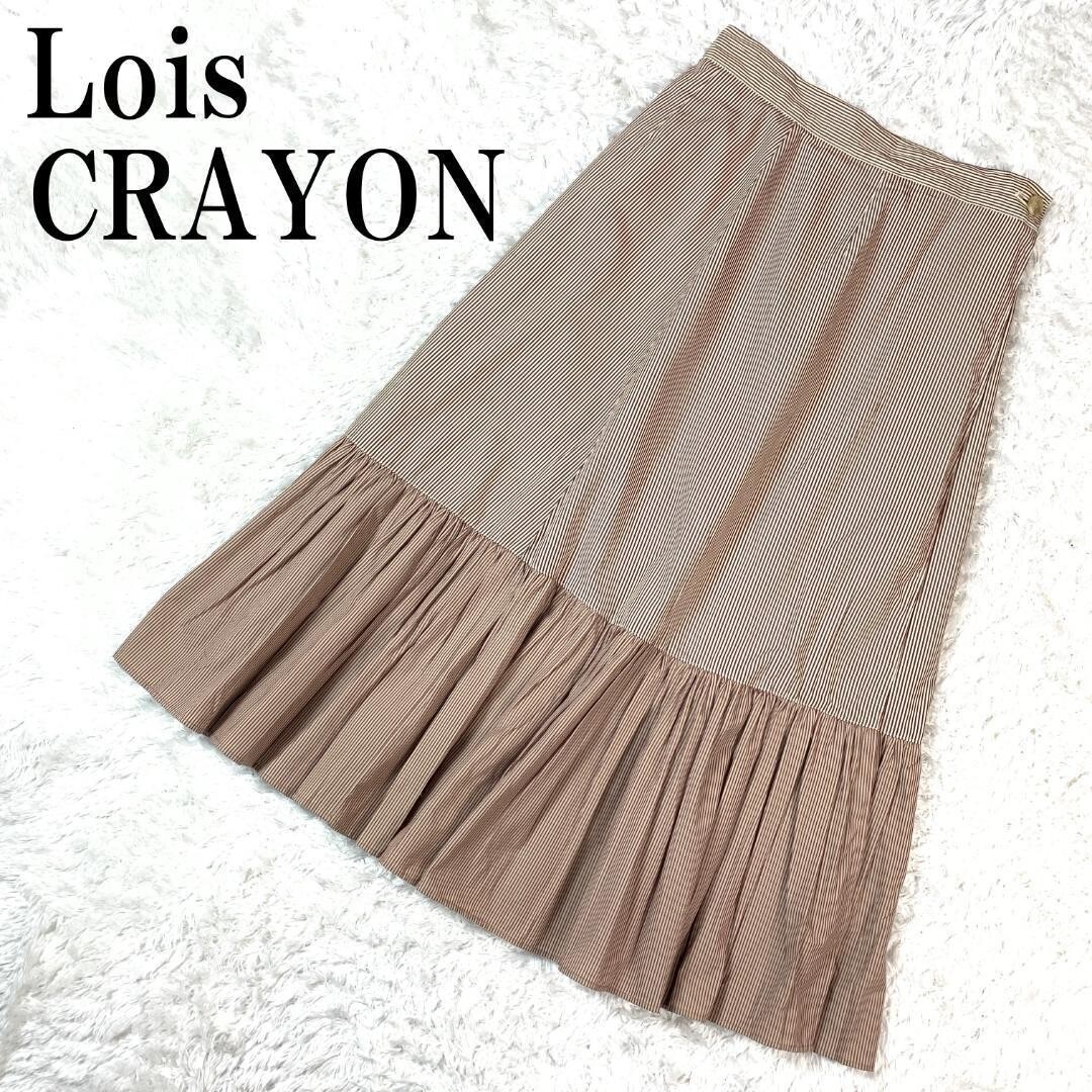 Lois CRAYON ロングフレアスカート レッドストライプロイスクレヨン ロングスカート 巻きスカート 赤 コットン100% M B7730