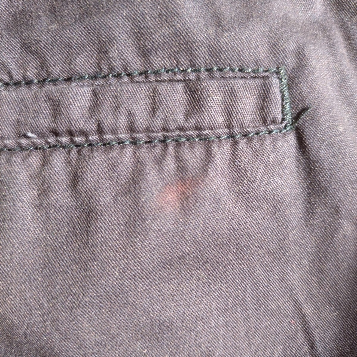 目立った汚れなどはありませんが、1箇所お尻のポケットのところにシミがあります。他見落としがありましたらすみません。