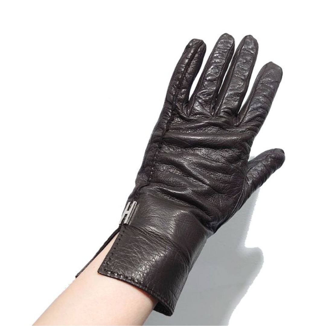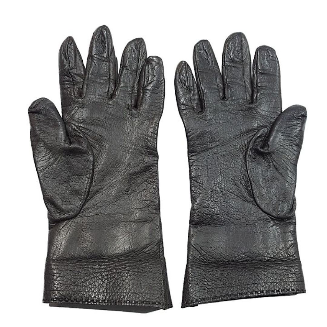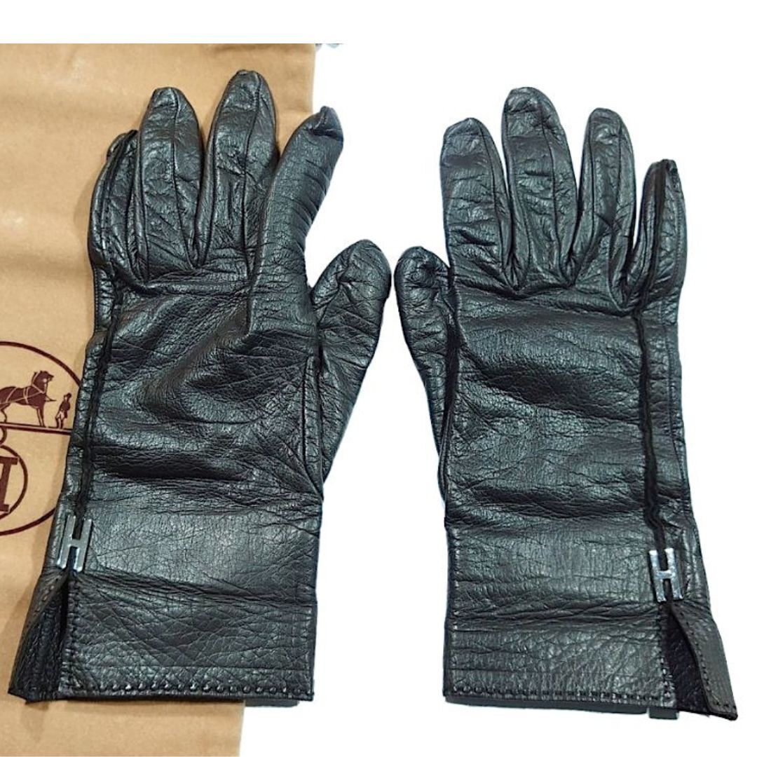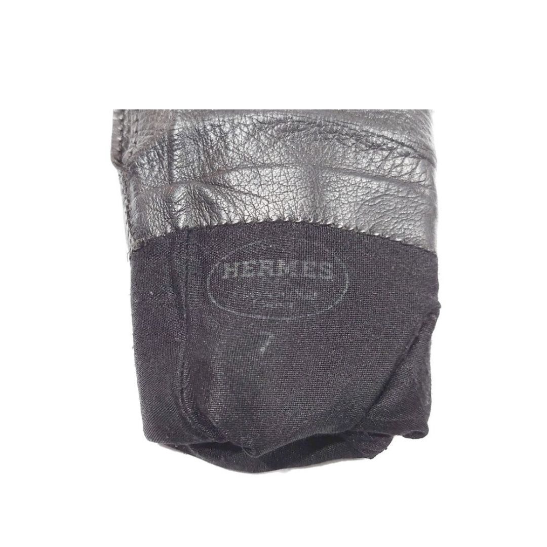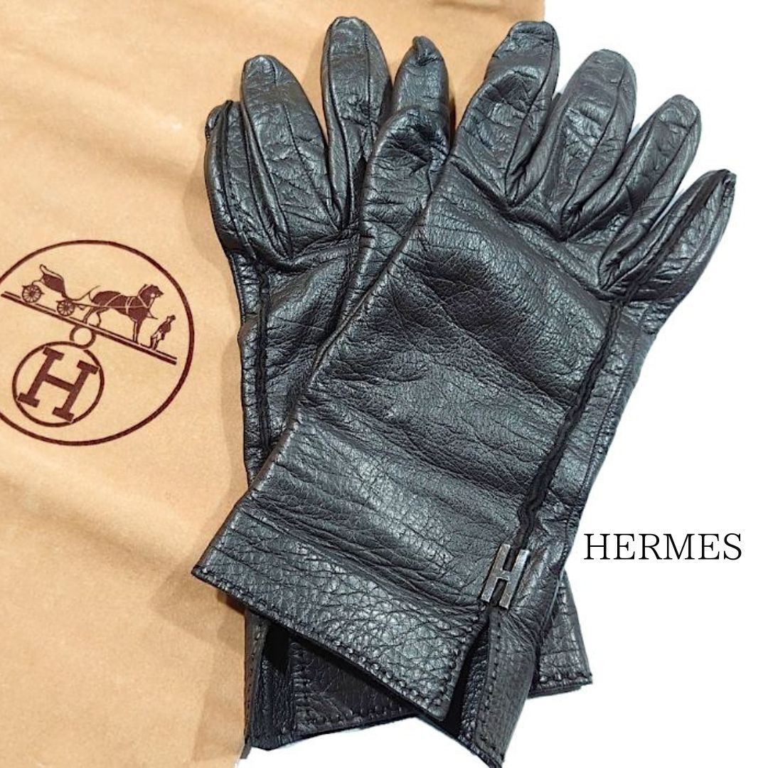 【鑑定済】HERMES エルメス Hロゴ グローブ 手袋 レディース size7 ラムスキン ダークグレー系 2WAY 送料無料