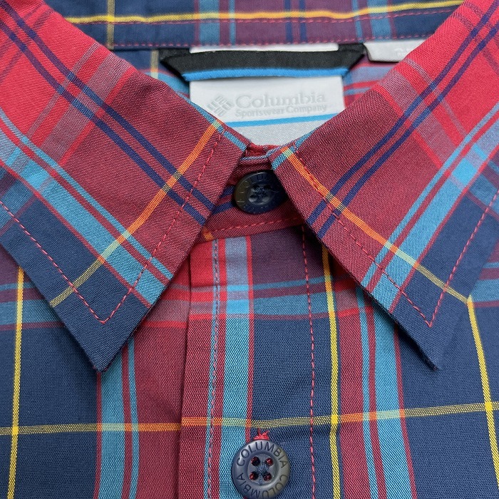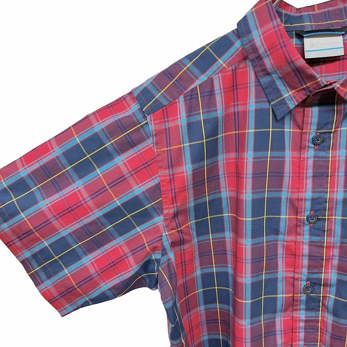 商品タイトル | コロンビア Columbia シャツ チェック 胸ポケット 半袖 袖に刺繍 OMNI-WICK ショートスリーブ ポリ×綿 M 赤×青×黄 メンズ |