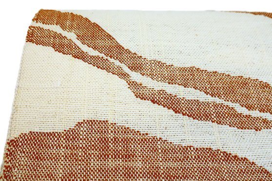 クリーム色の紬地の名古屋帯です。 橙色で織り込まれた柄行きがお洒落な一本です。 松葉仕立てです。 未使用品です。 担当:伊藤 |