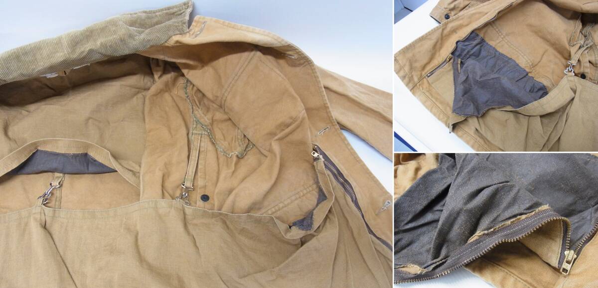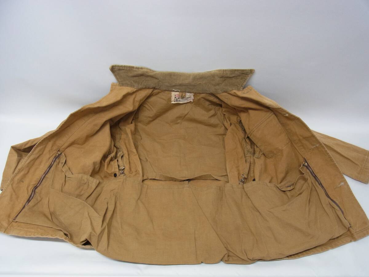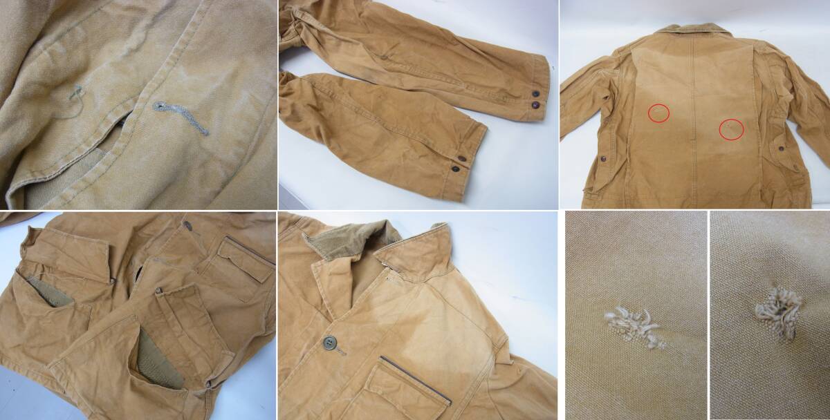 | 譲り受けた物で、本来の状態、年代など含め詳細は不明です。 画像にてお詳しい方、お分かりになる方のご判断でお願い致します。 前身頃中央のボタンがありません。 スレ・キズやほつれ・穴、色あせやシミ・汚れなどございます。 ゴワツキ、保管シワ・クセ、保管臭もございます。 現状でのお渡しとなりますので、クリーニングやお手入れ、リペア、リメイクなど前提のうえ、 十分なご検討をお願い致します。 (クリーニングでの汚れ落ちなどの程度は分かりかねます。) 状態に関しましては画像でご確認いただき、ご判断をお願い致します。 気になる点はご入札前にご質問ください。 ※専門的な知識がありませんので、ご質問内容によっては お答え出来ない場合があるかもしれません。予めご了承ください。 ヴィンテージ古着、現状でのお渡し、経年保管品になりますので、 ご理解いただける方のご入札いただけましたら幸いです。 撮影した照明により、色合いが多少違って見えるかもしれませんが、ご了承ください。 【サイズ】※タグ表示なし -------------------------------------------------------------------------------- ▲ご注意ください▲ カテゴリーでは「M」サイズで出品しておりますが、表示がありませんので、 下記のサイズを参考にお手持ちのジャケットなどと比較のうえ、 十分なご検討をお願い致します。 -------------------------------------------------------------------------------- 肩幅約46センチ 身幅約55センチ 袖丈約54センチ 丈約68センチ ※平置き/素人採寸です。多少の誤差はご了承くださいませ。 【発送方法】 ・ゆうパック/60サイズ ---------------------------------------------------------------------- ※ゆうパックの送料はお届け地域によって送料が異なりますので、 気にされる方は必ずご入札前に「質問欄」よりお問い合わせください。 注意(必ずお読みください) ・スムーズなお取引を心がけております。新規の方・悪い評価の多い方は、ご入札前に、質問欄よりお問い合わせください。 ・悪い評価の多い方はこちらの判断で削除する場合がございます。 ・神経質な方・完璧を求められる方のご入札はご遠慮下さい。 ・気になる事・ご希望はご入札前に必ず質問欄よりご質問お願いいたします。 ・ご入札後の質問・ご希望・クレーム・入札取り消し・落札後のキャンセル等は、 いかなる理由でも一切お受けできません。 ご確認のうえ、ご入札ください。 ・ノークレーム・ノーリターンでお願いいたします。 ・値下交渉は受け付けません。 ・発送方法はこちらの指定方法でお願いいたします。 ・レターパックをご利用いただく場合は万が一の補償がありませんので、配送中の商品の破損等が発生しましても当方では対応できません。破損の恐れがある商品につきましてはゆうパックのご利用をお勧め致します。 ・オークション終了後24時間以内に「取引ナビ」にてご連絡お願いします。 (ご連絡ない場合、入札削除・ブラックリスト登録とさせていただくことがございます) ・お取引のご案内連絡後、落札日を含む4日以内にお振込をお願い致します。 (かんたん決済の支払期限とは異なります。) ・領収書の発行は致しません。 ・梱包はリサイクルダンボール等を使用しています。ご了承ください。 ・発送連絡と同時に、評価をさせていただいております。ご不要の方は、初めにお知らせください。なお、差し支えなければ、評価をお願いいたします。 ・上記をご理解のうえ、ご入札願います。 | |||