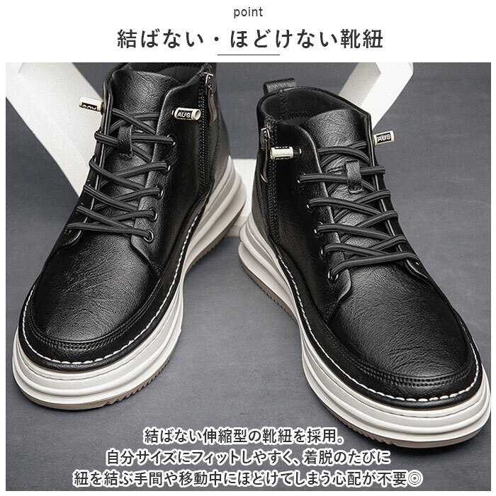 商品説明 | ・・こっそりスタイルアップが叶う☆デイリー使いしやすい、メンズ用シークレットシューズが新登場。 ・【使い勝手ばっちりな1足】 ・滑らかな手触りで、落ち着きのある雰囲気に仕上げたシューズ。オフの日のお出かけにはもちろん、カジュアルスタイルでの通勤や通学にもおすすめ。 ・【秘密のインヒールを内蔵】 ・程よい厚みのソールに加え、高さを出すインヒールをプラス。見た目は普通のシューズなのに、履くだけでちょこっと身長がアップ! ・【結ばない・ほどけない靴紐】 ・結ばない伸縮型の靴紐を採用。自分サイズにフィットしやすく、着脱のたびに紐を結ぶ手間や移動中にほどけてしまう心配が不要◎ ・【足入れがスムーズ】 ・履き口が開いて脱ぎ履きしやすい、サイドファスナーを装備。かかとにはプルタブ付き。 ・【歩きやすさが向上】 ・つま先部分に屈曲性があり、やや上を向いた形状。つまづきにくく、蹴り上げやすい! ・【安定感のあるソール】 ・フラットで歩きやすいソール。細かな凹凸を施した滑りにくい素材で、濡れた路面でも安心。 ・【選べるカラー】 ・コーデを選ばず使える、モノトーンカラーをラインナップ。お好みに合わせてチョイスして! |