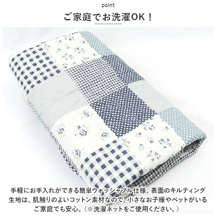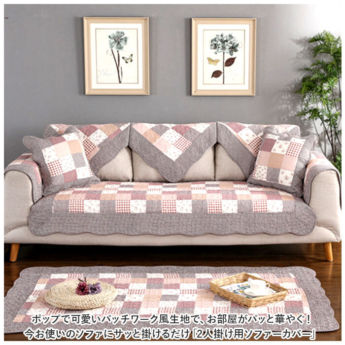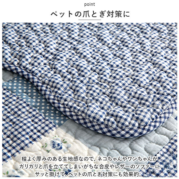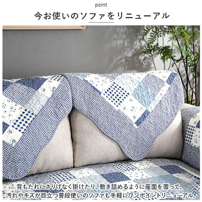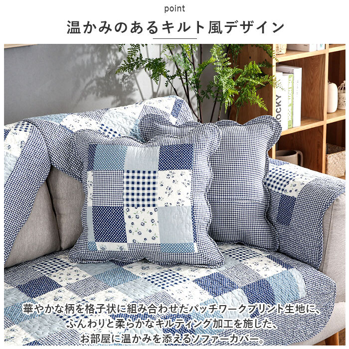 | 商品説明 | ・・ポップで可愛いパッチワーク風生地で、お部屋がパッと華やぐ!今お使いのソファにサッと掛けるだけ「2人掛け用ソファーカバー」 ・【温かみのあるキルト風デザイン】 ・華やかな柄を格子状に組み合わせたパッチワークプリント生地に、ふんわりと柔らかなキルティング加工を施した、お部屋に温かみを添えるソファーカバー。 ・【今お使いのソファをリニューアル】 ・背もたれにさりげなく掛けたり、敷き詰めるように座面を覆って、汚れやキズが目立つ普段使いのソファも手軽にワンポイントリニューアル。 ・【ペットの爪とぎ対策に】 ・程よく厚みのある生地感なので、ネコちゃんやワンちゃんがガリガリと爪を立ててしまいがちな合皮やレザーのソファーにサッと掛けて、ペットの爪とぎ対策にも効果的。 ・【裏面ドット滑り止め加工】 ・裏面にはドット状に滑り止めが施されているため、お掃除のたびにカバーを直す手間がないのも嬉しいポイント! ・【ご家庭でお洗濯OK!】 ・手軽にお手入れができる簡単ウォッシャブル仕様。表面のキルティング生地は、肌触りのよいコットン素材なので、小さなお子様やペットがいるご家庭でも安心。(※洗濯ネットをご使用ください。) ・【選べるカラーで、気持ち華やぐ】 ・フラワー柄やチェックなど、淡く優しい色合いのパターンを組み見合わせた、お部屋がほっこり和むカラーバリエーション。2人掛け用のソファにちょうどいい、「70cm×150cm」「90×160cm」の2種類からピッタリサイズがチョイス可能。 |