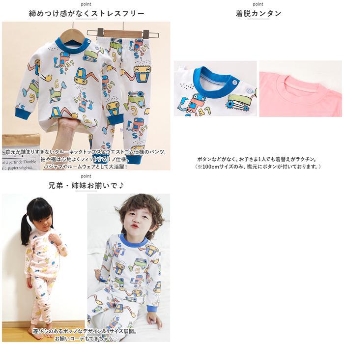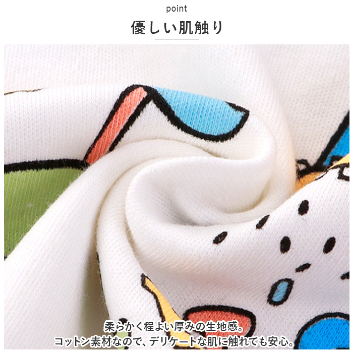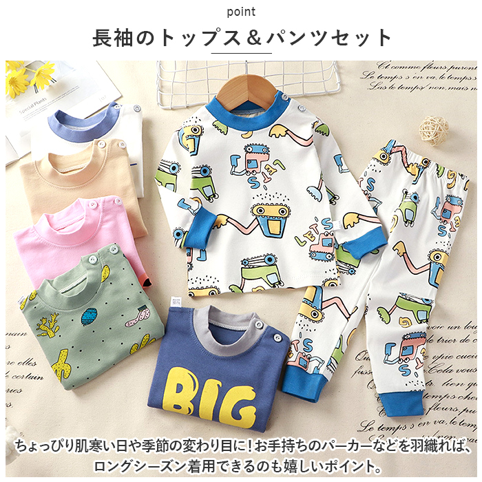 商品説明 | ・・着心地バツグン。デイリー使いにぴったりな、キッズ用パジャマセットが新登場。 ・【長袖のトップス&パンツセット】 ・ちょっぴり肌寒い日や季節の変わり目に!お手持ちのパーカーなどを羽織れば、ロングシーズン着用できるのも嬉しいポイント。 ・【優しい肌触り】 ・柔らかく程よい厚みの生地感。コットン素材なので、デリケートな肌に触れても安心。 ・【締めつけ感がなくストレスフリー】 ・首元が詰まりすぎないクルーネックトップス&ウエストゴム仕様のパンツ。袖や裾は心地よくフィットするリブ仕様。パジャマやルームウェアとして大活躍! ・【着脱カンタン】 ・ボタンなどがなく、お子さま1人でも着替えがラクチン。(※100cmサイズのみ、襟元にボタンが付いております。) ・【持ち運びにも便利】 ・折りたたんでもかさばらず、旅行などにもおすすめ。 ・【兄弟・姉妹お揃いで♪】 ・遊び心のあるポップなデザイン&4サイズ展開。お揃いコーデもできちゃう☆ |