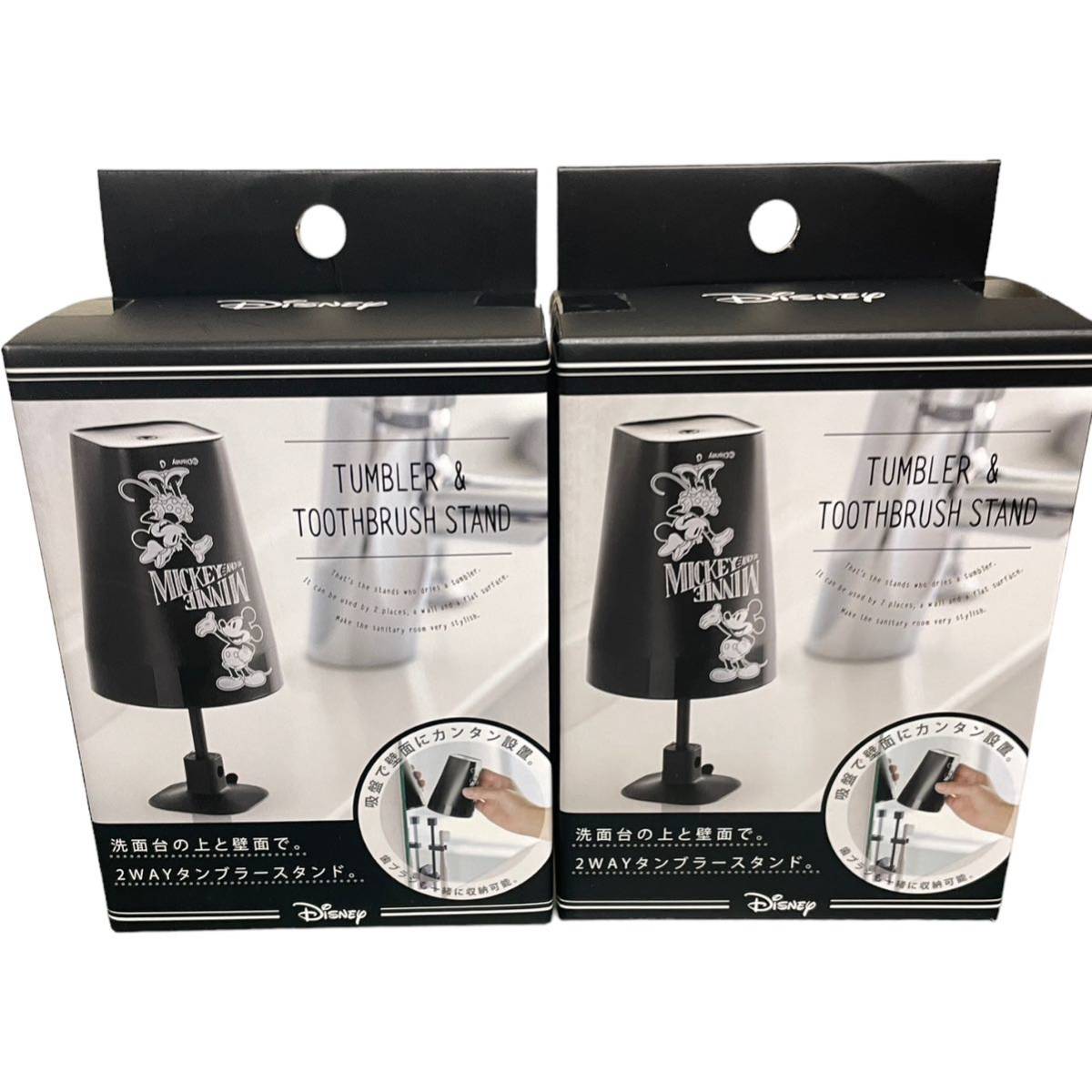 ハブラシ収納付 吸盤コップ立て&コップ ブラック <ミッキー&ミニー>