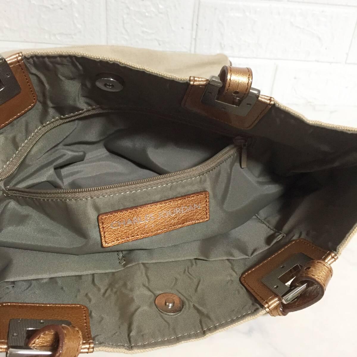 no29124 CHARLES JOURDAN シャルルジョルダン エナメル レザー キャンバス 帆布 肩掛けショルダー トート バッグ