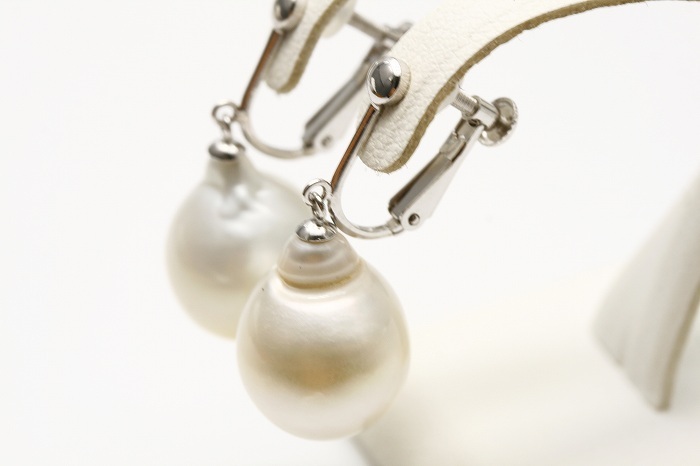 南洋白蝶真珠を使ったパールイヤリングです。 ふっくらとしたドロップフォルムで大珠12mmサイズでご用意させて頂きました。 耳元にシンプルに置くだけで気品溢れるスタイルを演出いたします。 上品なホワイト系カラーのお色目です。 イヤリングは開閉可能のネジバネ式です。 | |