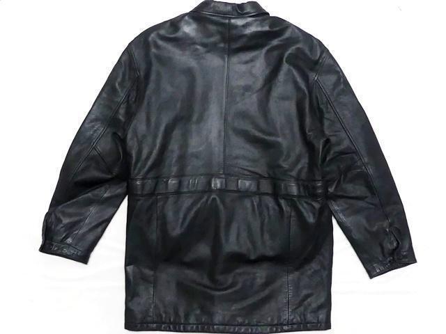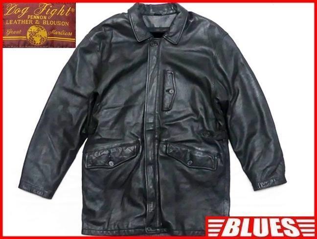 即決★DOG FIGHT★メンズL位 レザーステンカラーコート ドッグファイト 3 黒 ブラック 本革 ジャケット 本皮 ビジネス 革ジャン カーコート