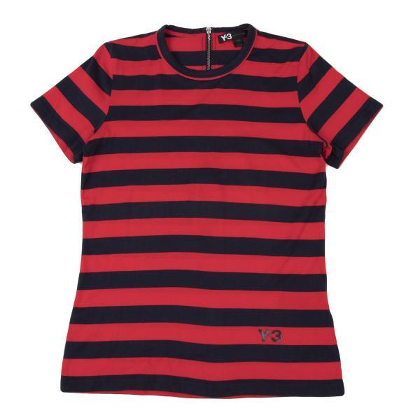 ワイスリーY-3 コットンボーダーバックジップTシャツ 赤紺S/P |