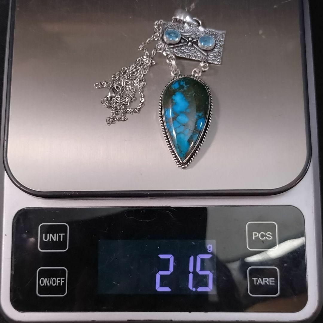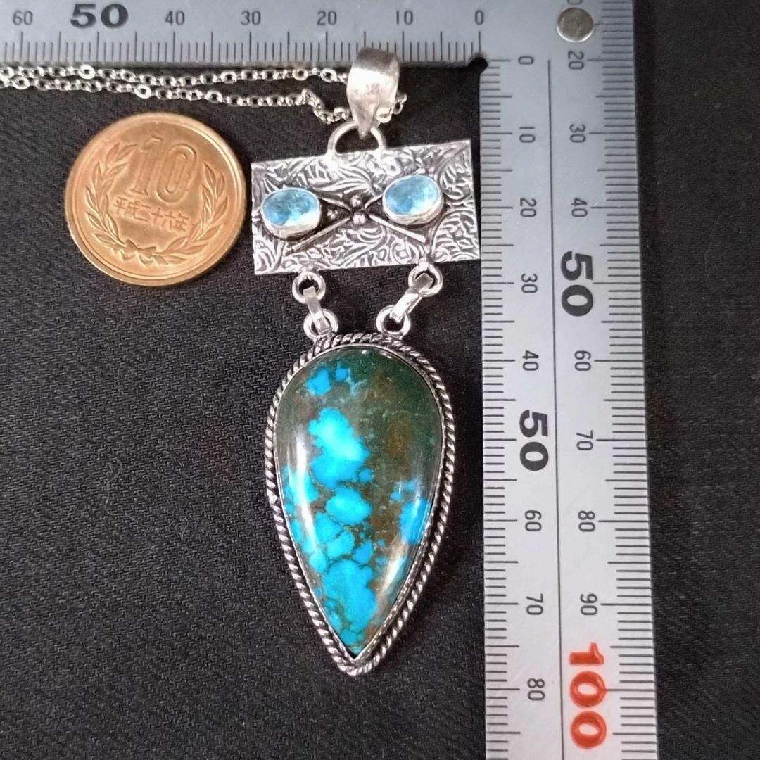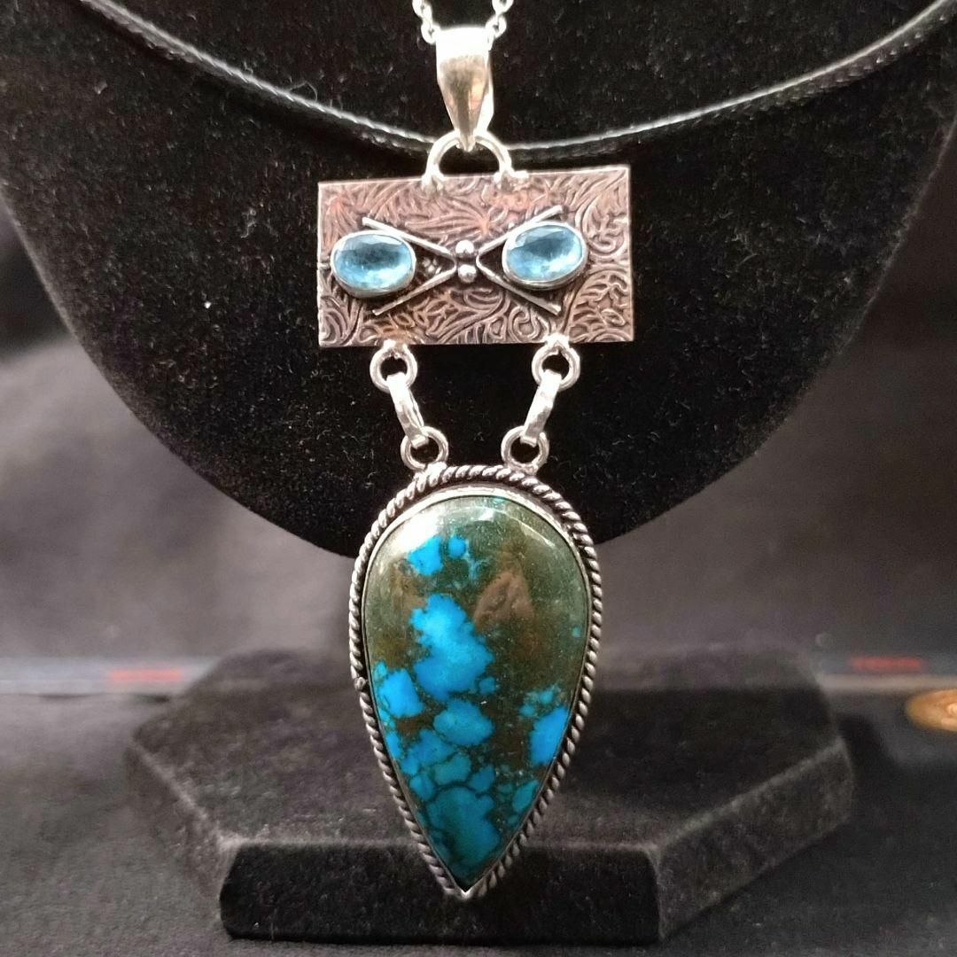 大ぶりの、空の石として名高いターコイズの一点もののネックレスです。