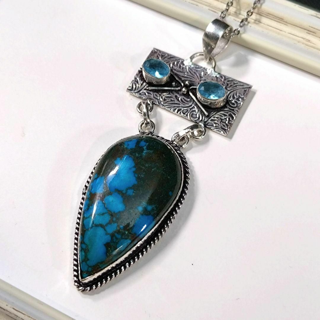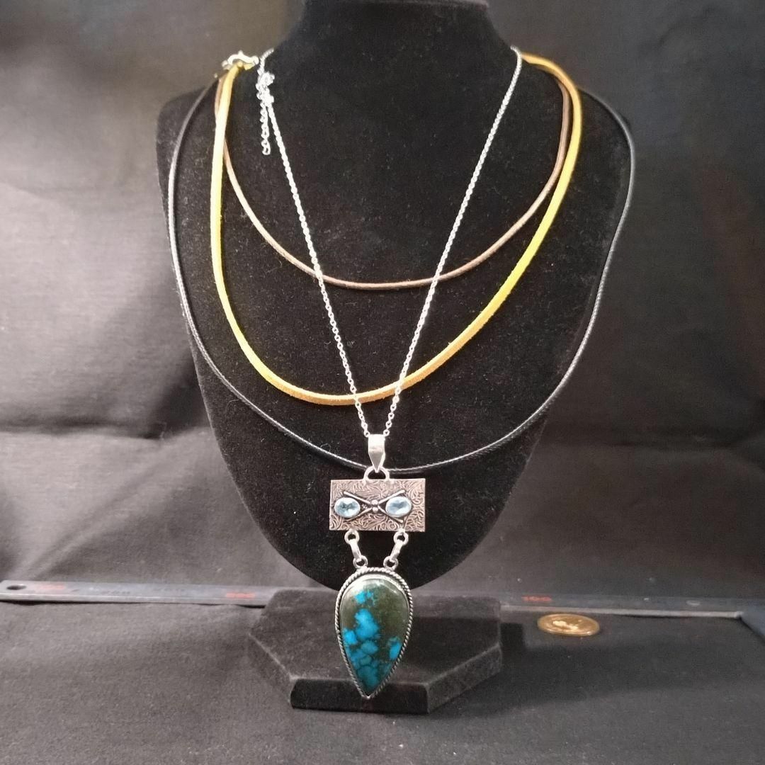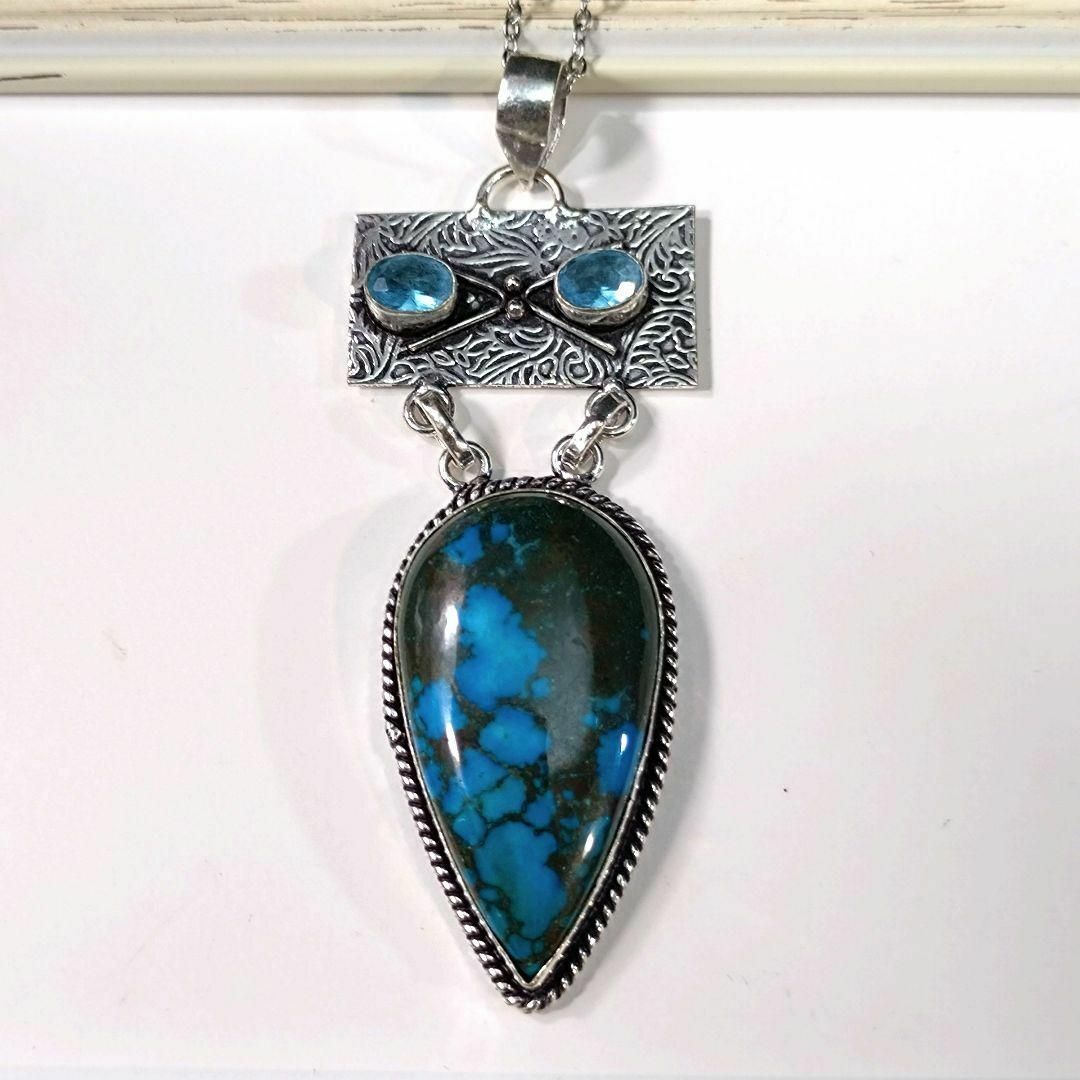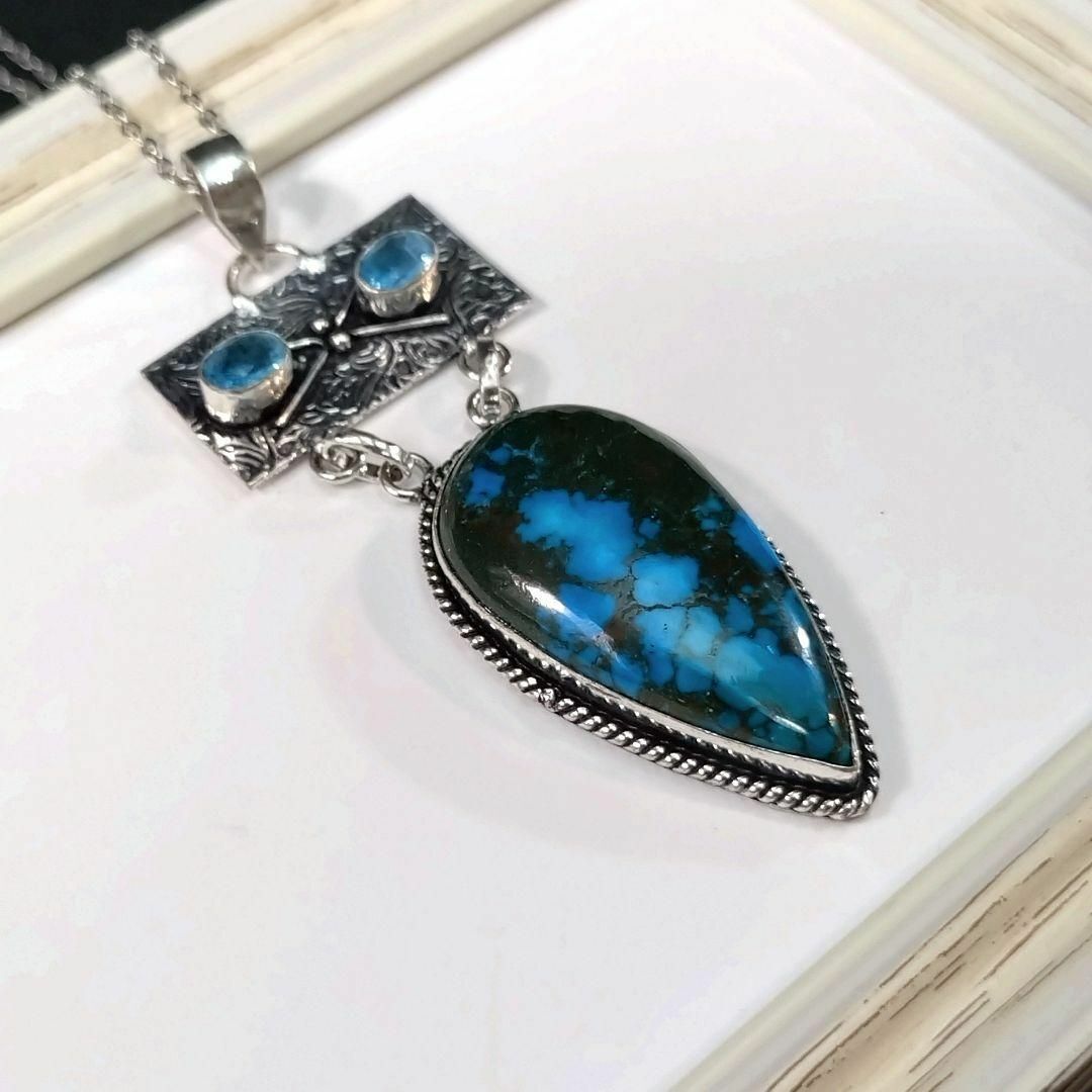 大ぶりの、空の石として名高いターコイズの一点もののネックレスです。