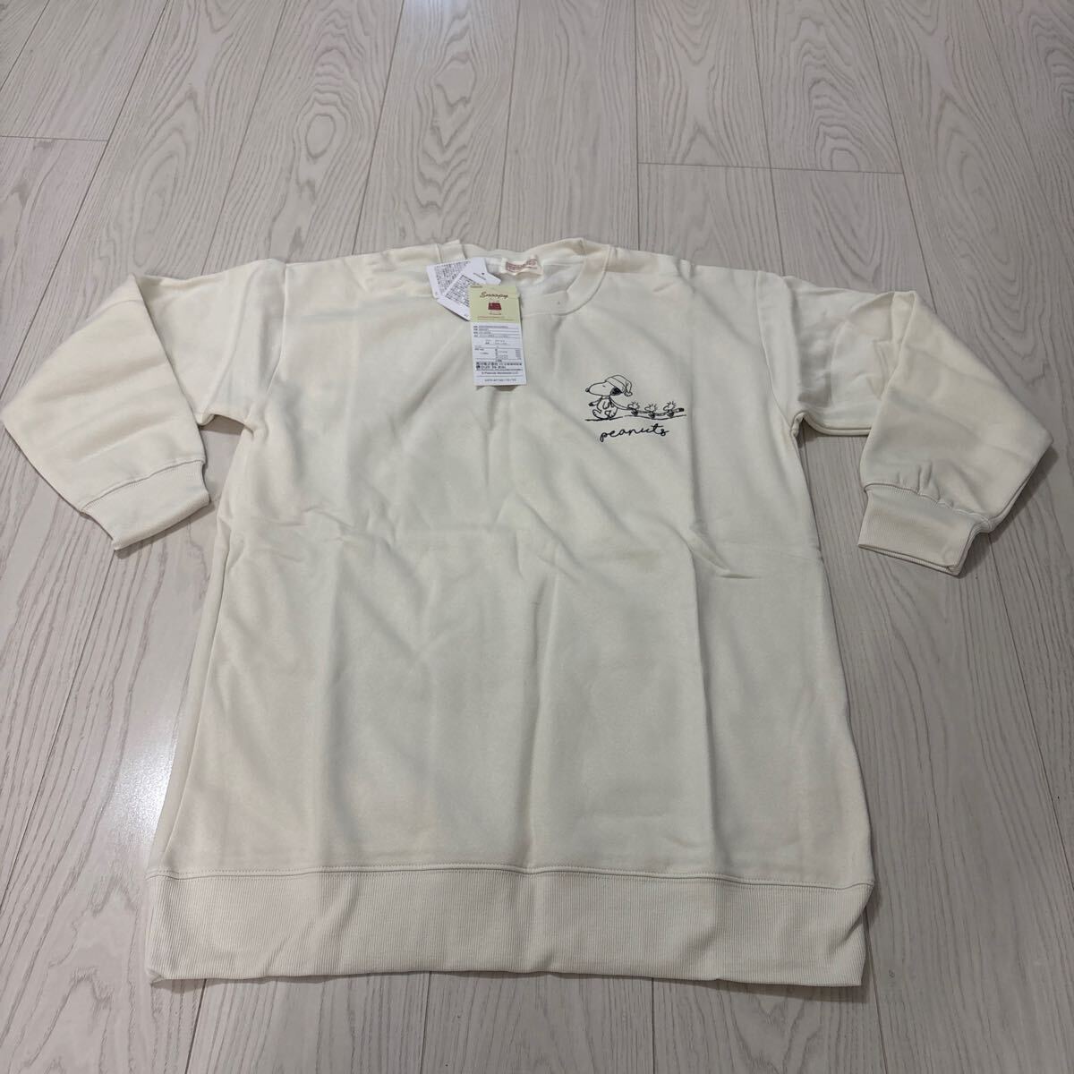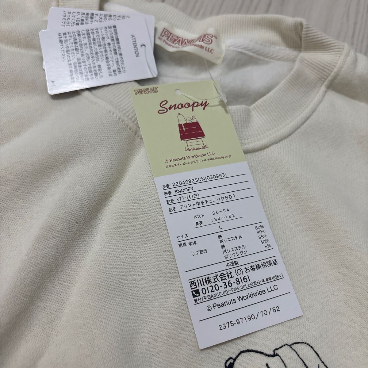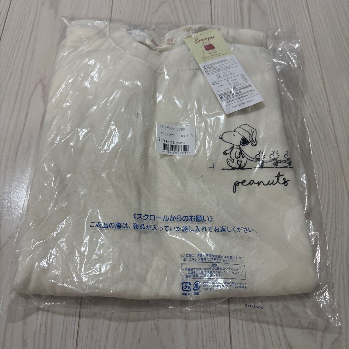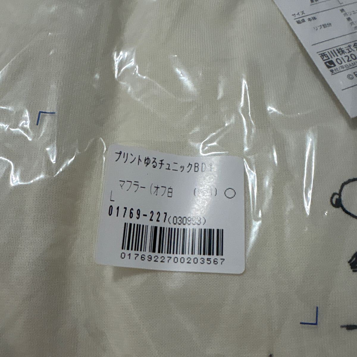 未使用●スヌーピー SNOOPY プリント ゆる チュニック トレーナー/オフ白/オフホワイト/マフラー/スウェット/トップス/長袖/ビッグ★2341-3