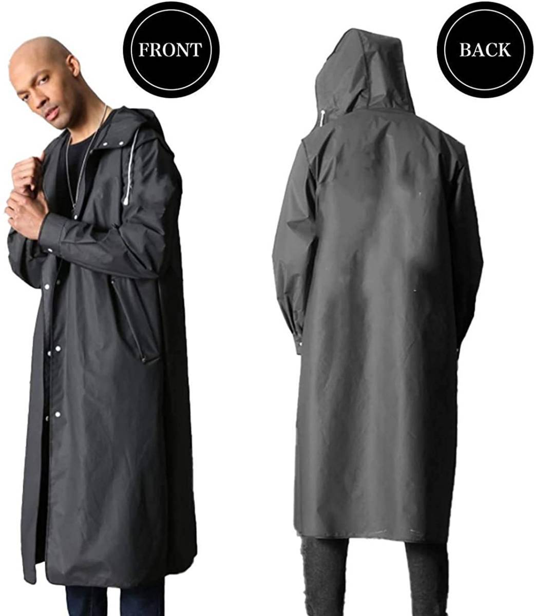 ロング丈でフードがついたレインコート(雨合羽)です。