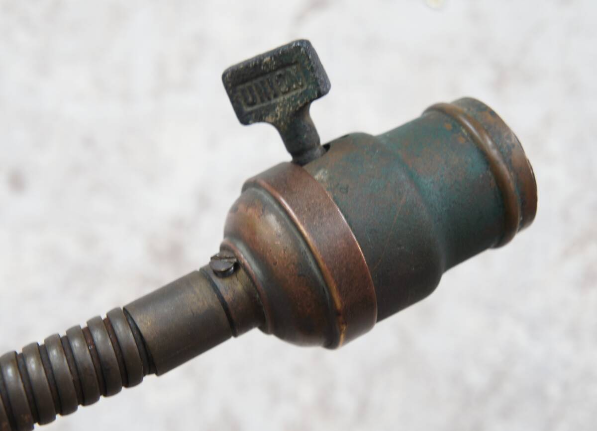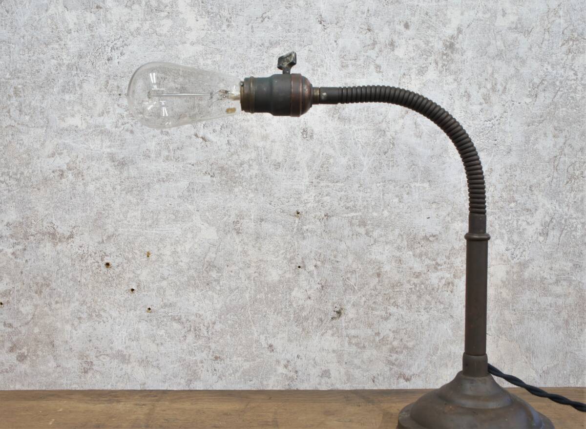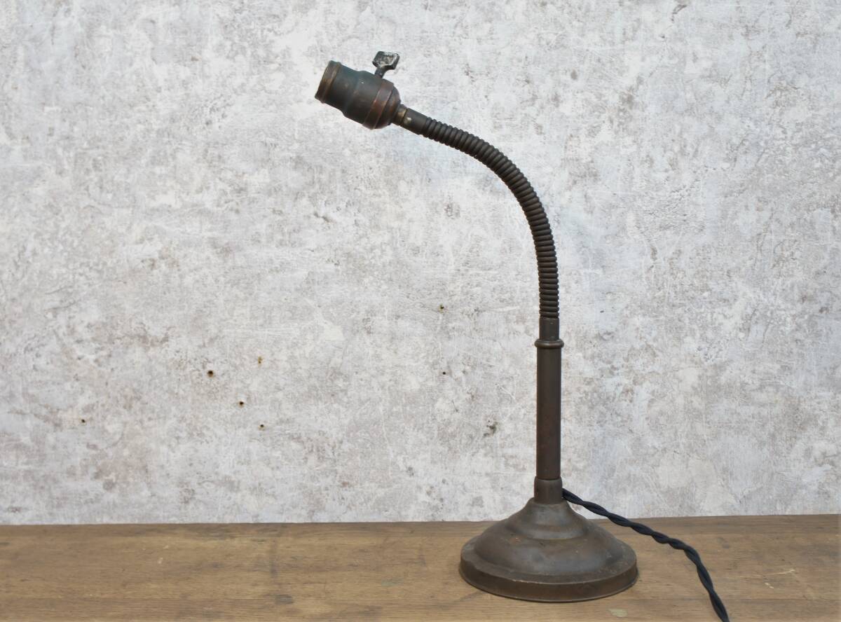 長い時代を経てきたことが分かるアンティークのデスクランプです。なんだかんだやっぱりグースネックは使いやすいですね。