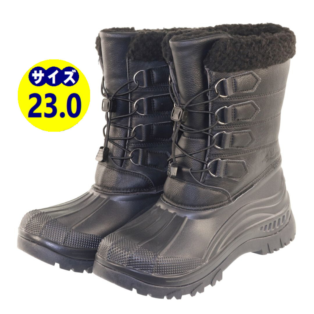【新品】男女兼用 防寒防水ダウンブーツ『24341-blk-230』ブラック スノーシューズ 防寒ブーツ 寒さ対策 防水 ボア 起毛素材