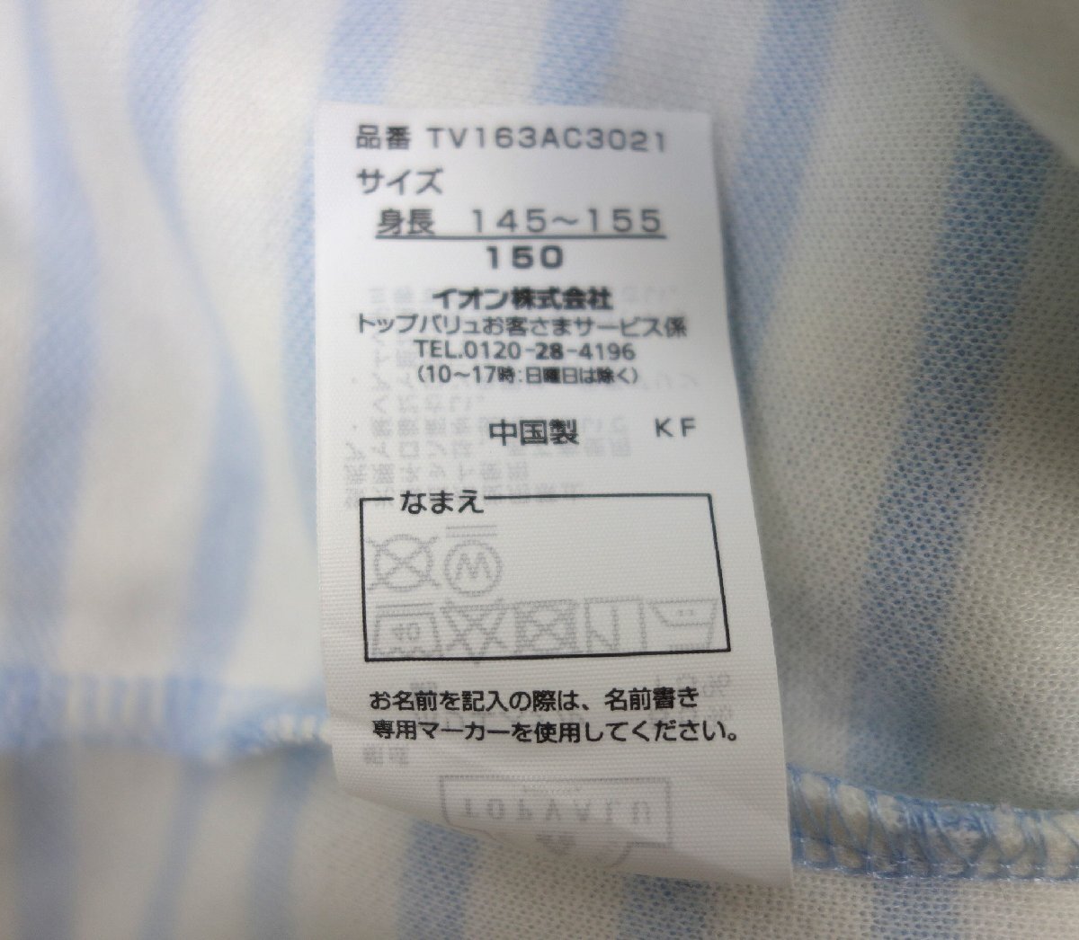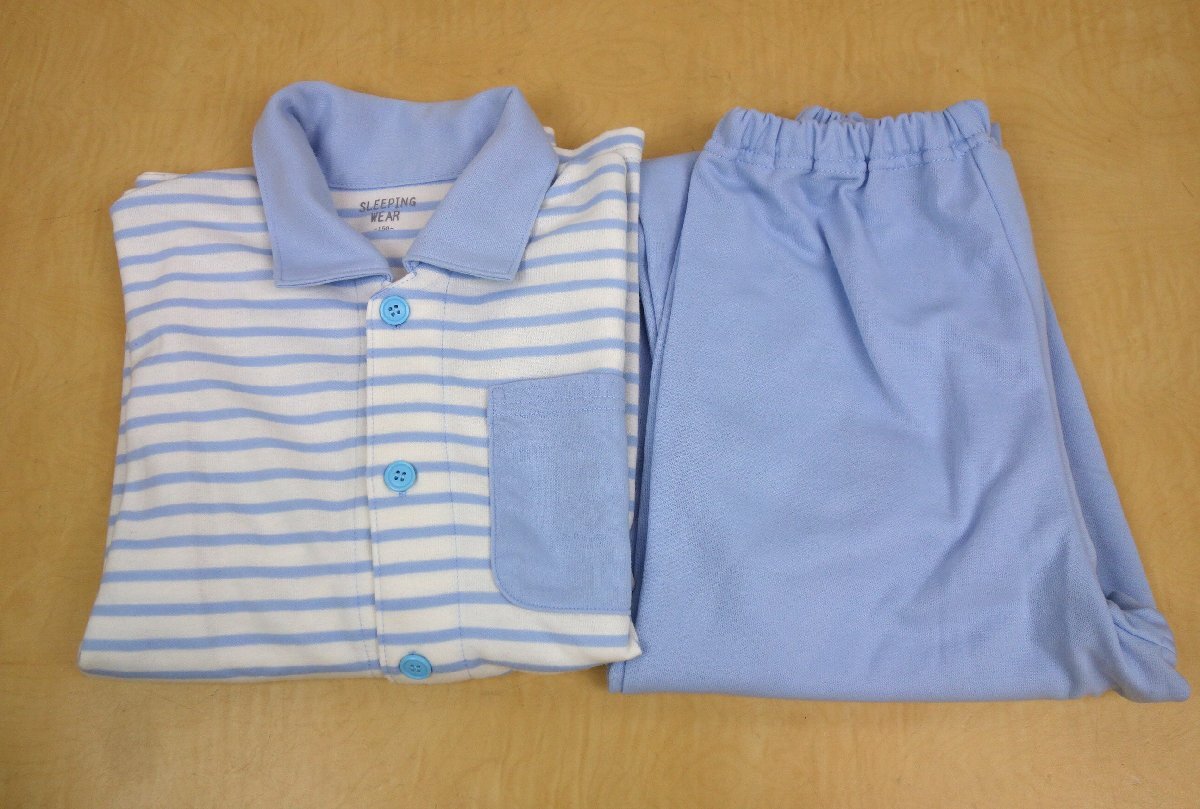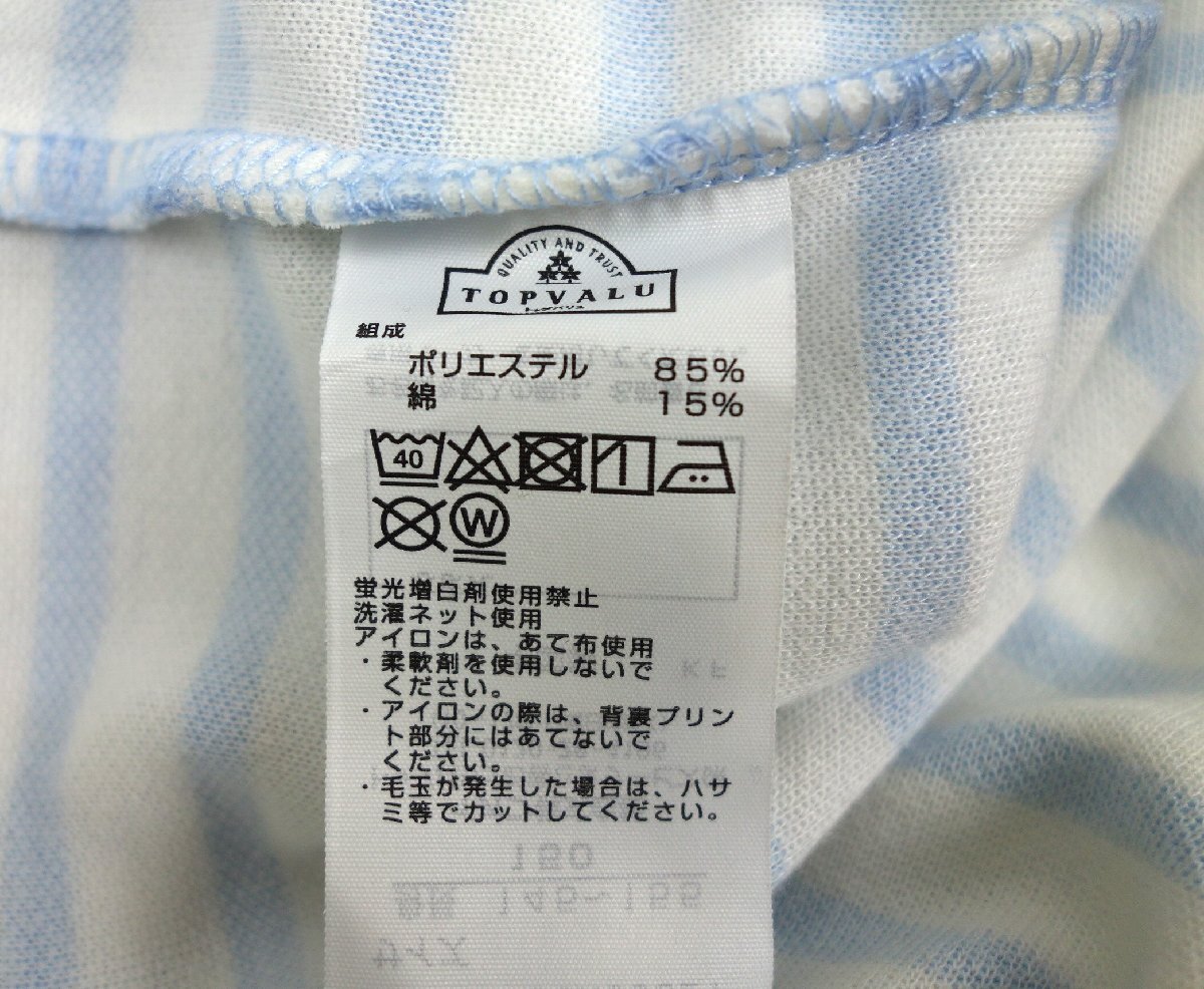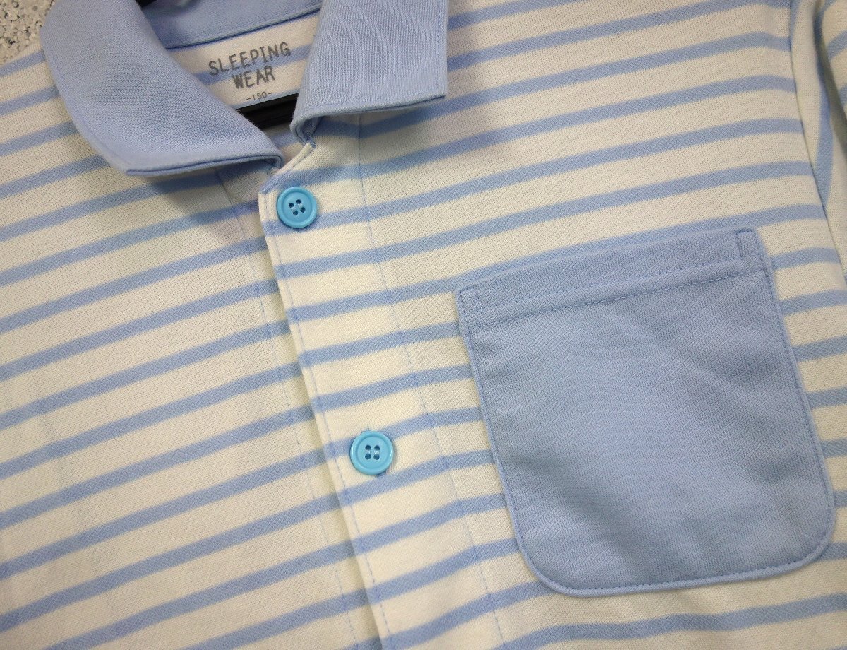 子供服 TOPVALU トップバリュ パジャマ ルームウェア 上下セット ボーダー柄 150サイズ 白×青 ホワイト×ブルー