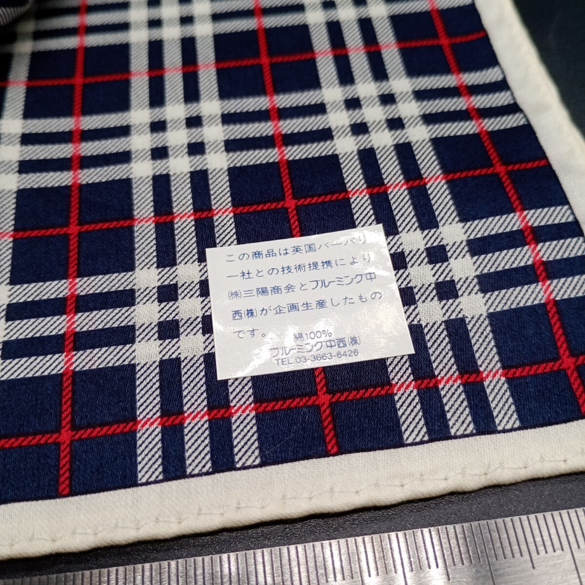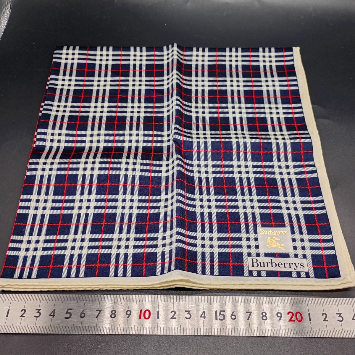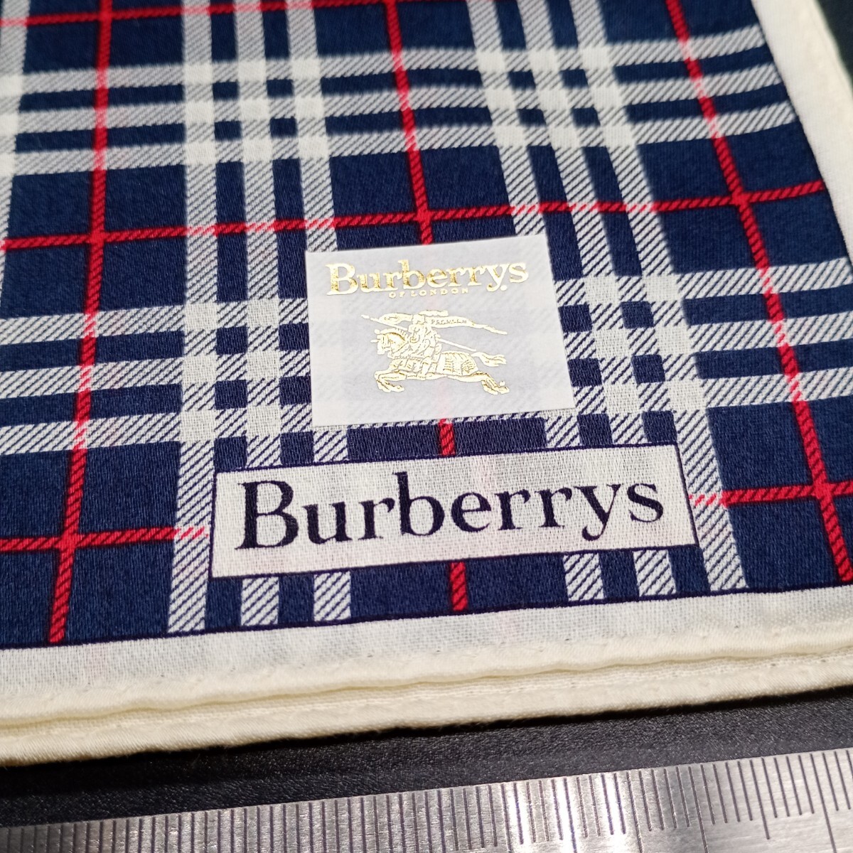 BURBERRYS バーバリー ハンカチ ネイビーチェック ふちオフホワイト no.3006