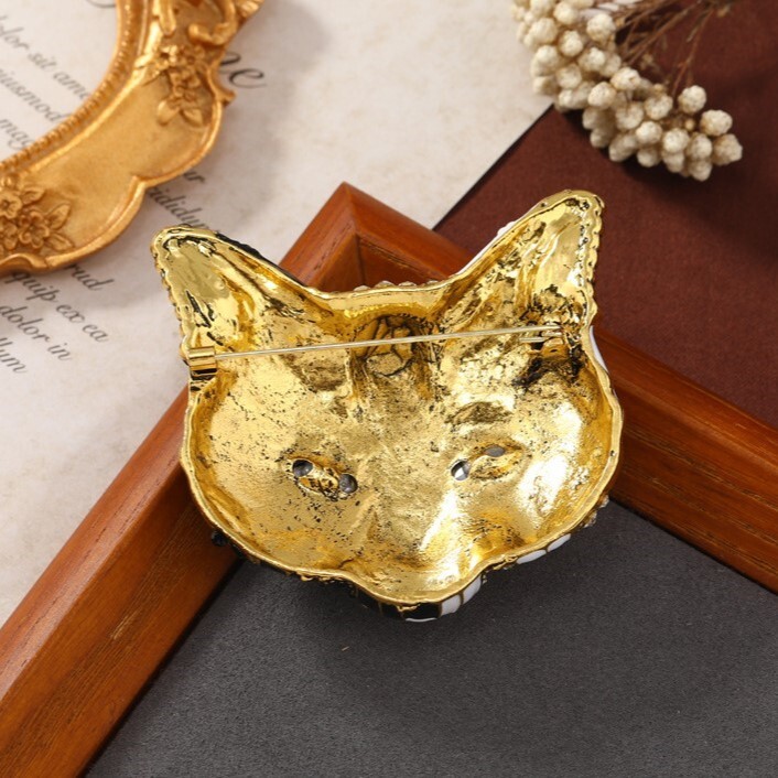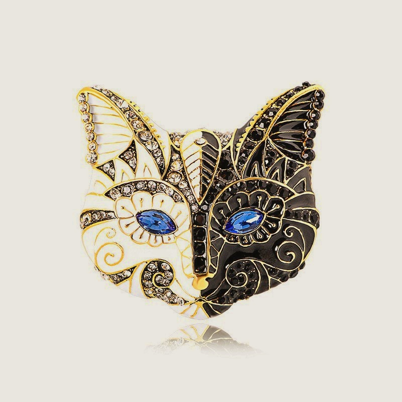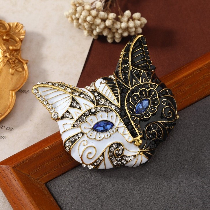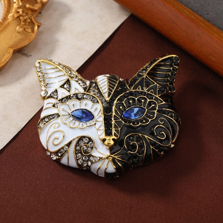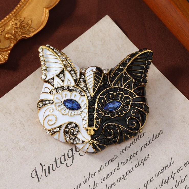 エレガント キャット マスク ブローチ 飾り ラインストーン ヴィンテージ