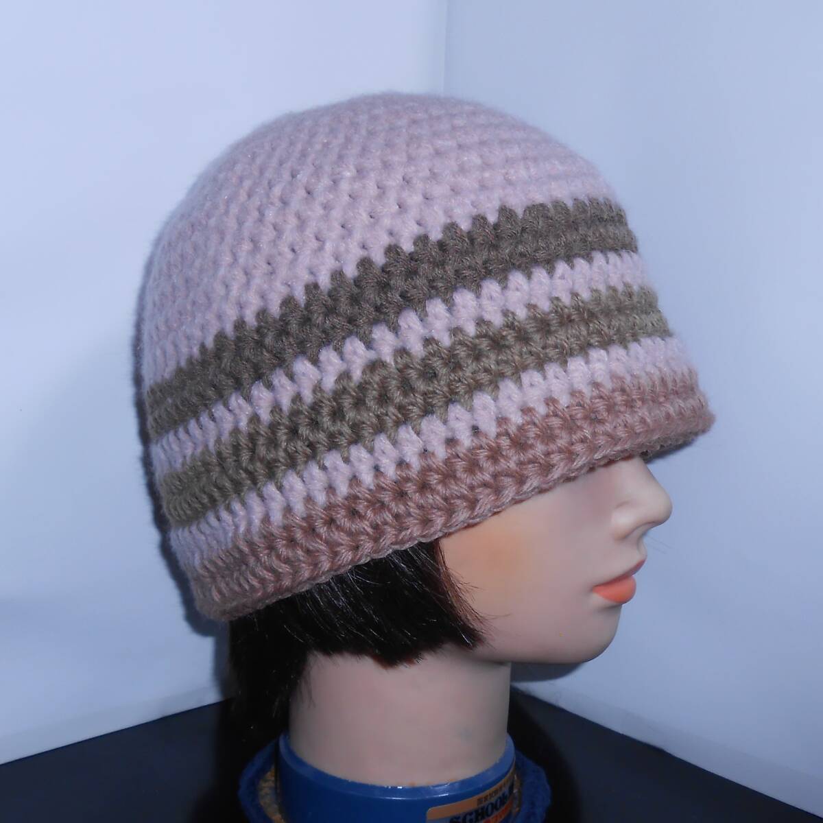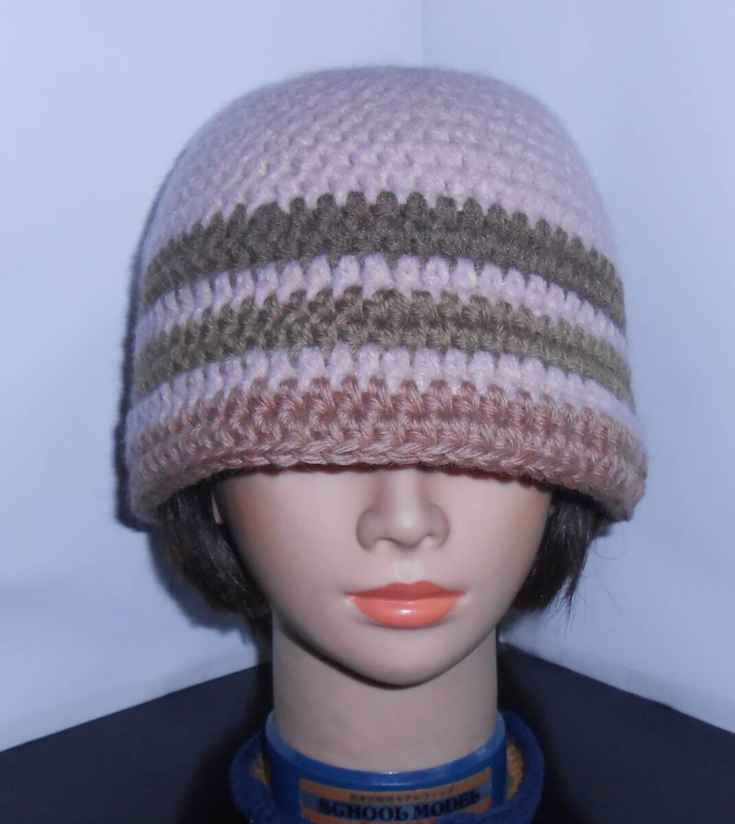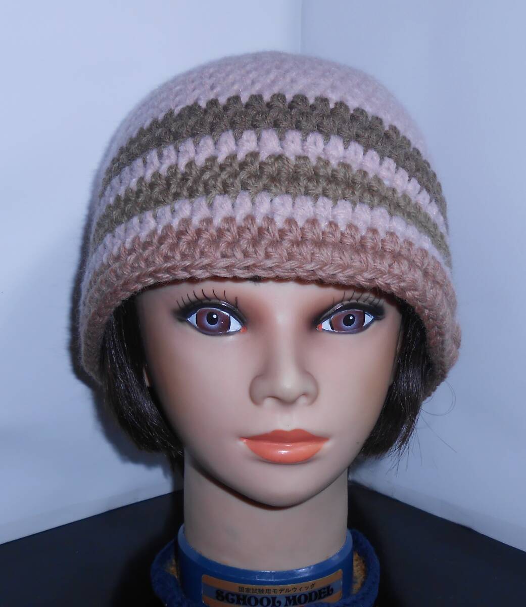 *柔らかく肌触りがとても良い毛糸 *サイズ・・・頭囲約59㎝ ・高さ約21,5㎝ ・つば先のまわり約65㎝ <モデル頭囲約56㎝>