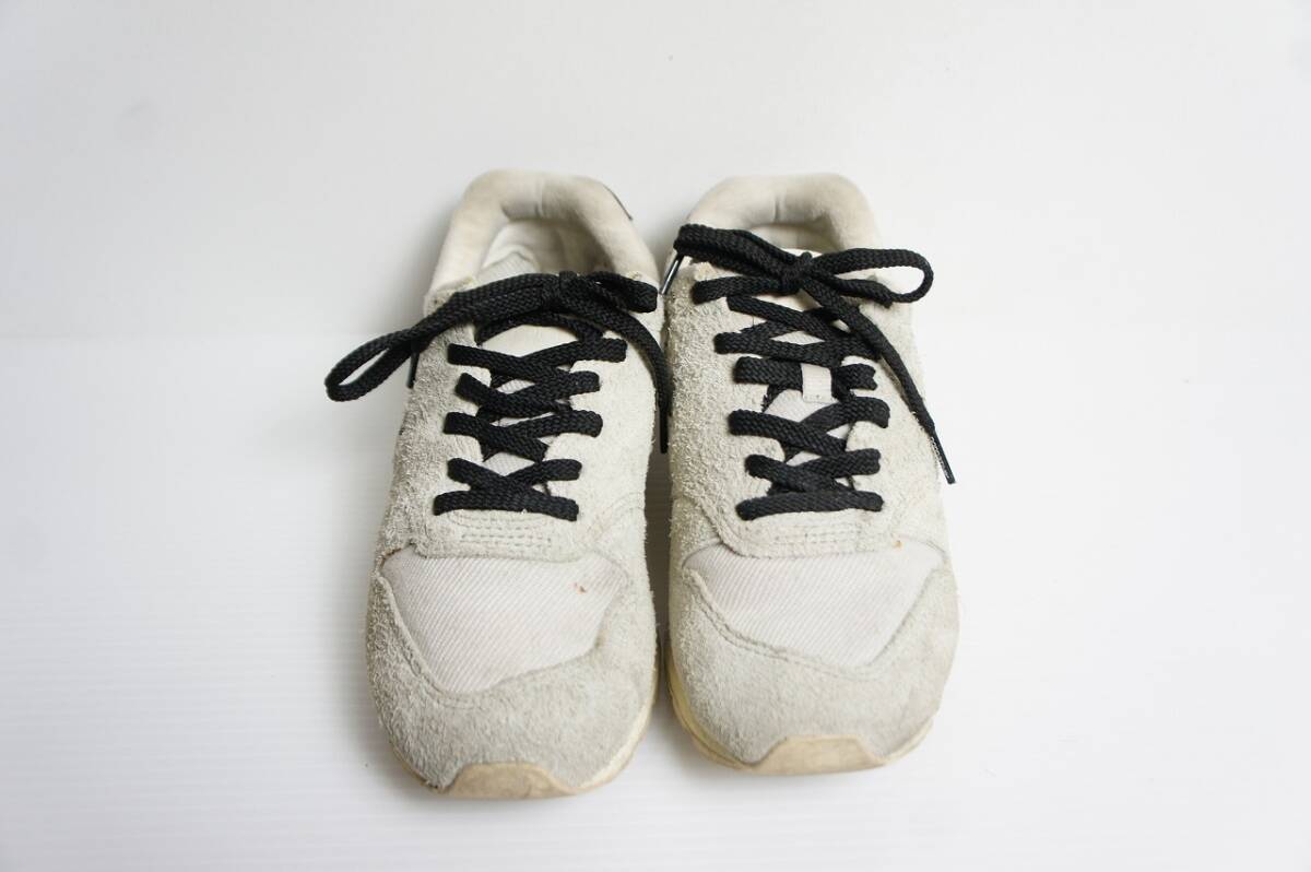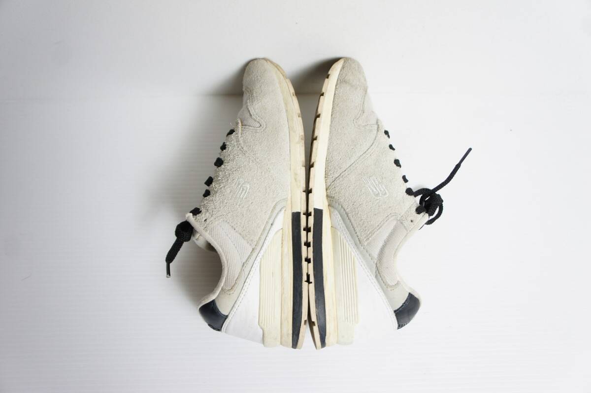 アッパーは毛足の長いスウェードとホワイトレザー、ビンテージ、ヨゴレ加工を施すことでレトロランニングをイメージして制作された一足。