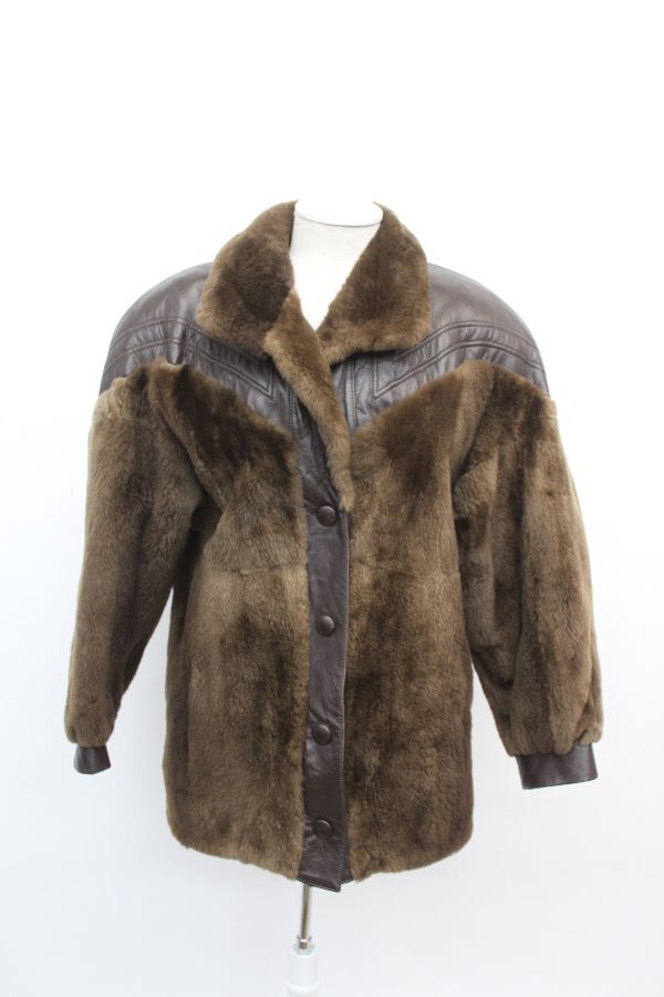 シェアード・ラクーン毛皮ファー&レザー・ジャケット アメリカンサイズ4-6