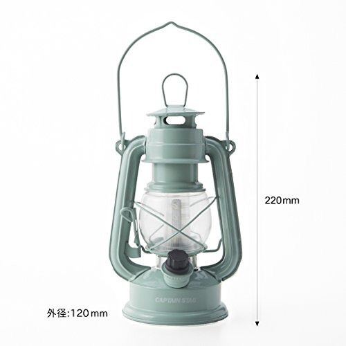 ・仕様:アップルグリーン 外径120×高さ220mm(取っ手含まず) M-1327・原産国:中国・製品サイズ:(約)外径120×高さ220mm(取っ手含まず)・製品重量:(約)230g(乾電池含まず)・材質:本体・持ち手/鉄(ラッカー塗装)、スイッチ/ABS樹脂、リフレクター/ポリスチレン、ホヤ/ガラス・仕様:光源/暖色LED(発行ダイオード)12個、電源/DC6V 単3乾電池4個使用(別売)、電池寿命/連続 最小8時間-最大約24時間(アルカリ乾電池使用時)使用状況により異なります・防水構造ではありませんので雨の日などの使用は避けて下さい雰囲気のあり暖色のLEDを搭載 やさしいオレンジ色の光 明るさは無段階調節 単3電池4個使用