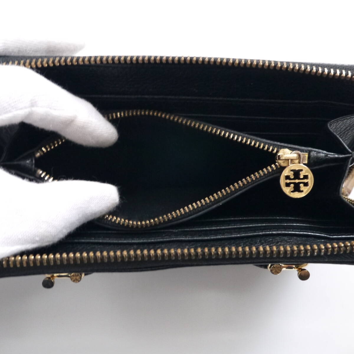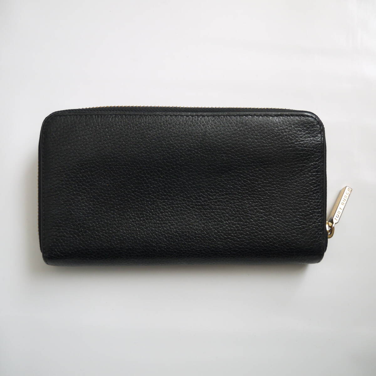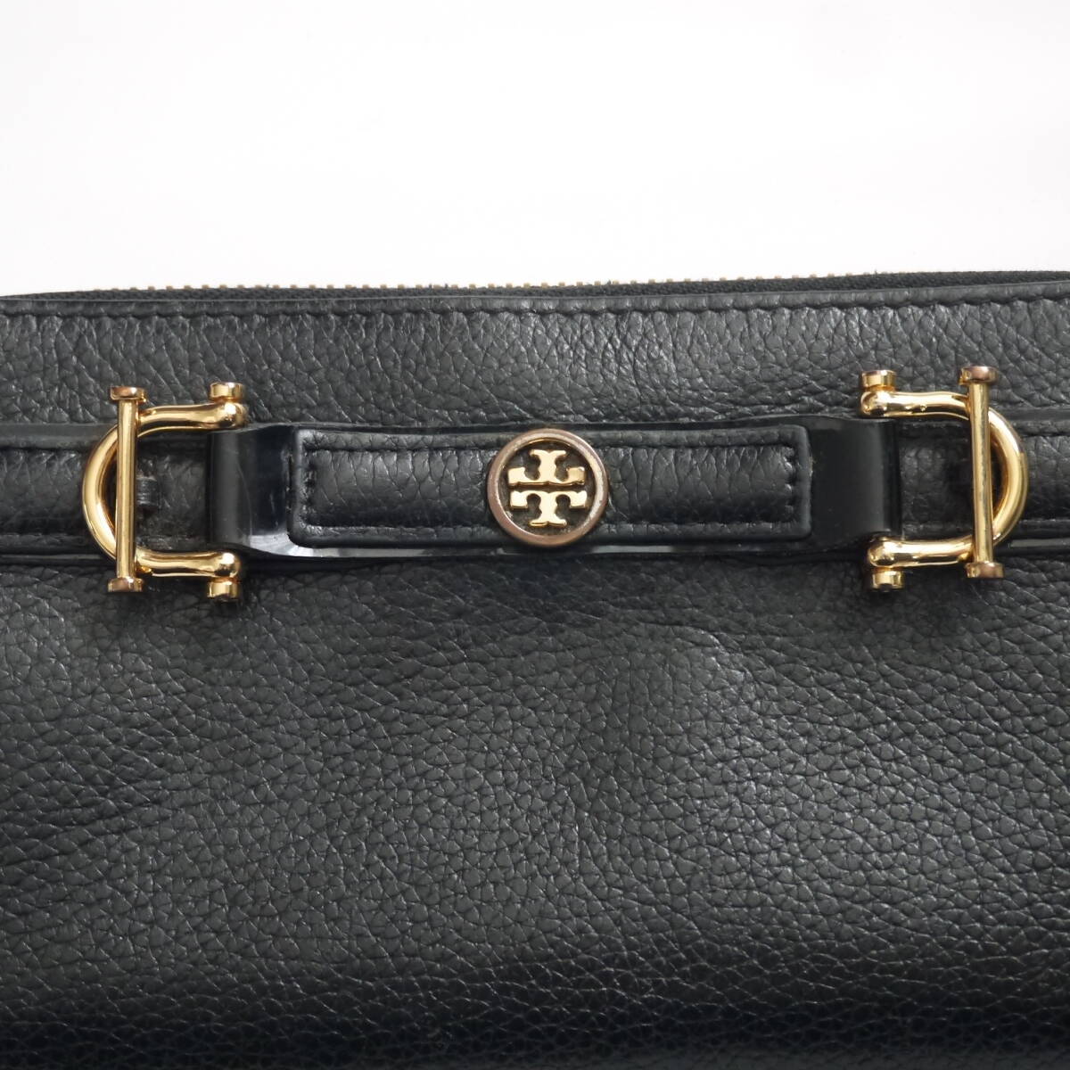 ◆   TORY BURCH   ◆   トリーバーチ   ◆ 30164M13 ◆          ロゴ プレート付き!     ラム革 レザー素材!  ラウンドファスナー式!     黒! ブラック系!        ベルト風 デザイン!