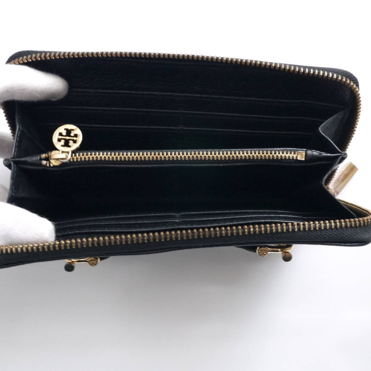 $ 美品 $ 激レア ◆ TORY BURCH ◆ トリーバーチ ◆ ラウンドファスナー 長財布 ◆ ベルト ロゴ 本革 レザー製 ◆ 黒 ブラック ◆ 送料無料