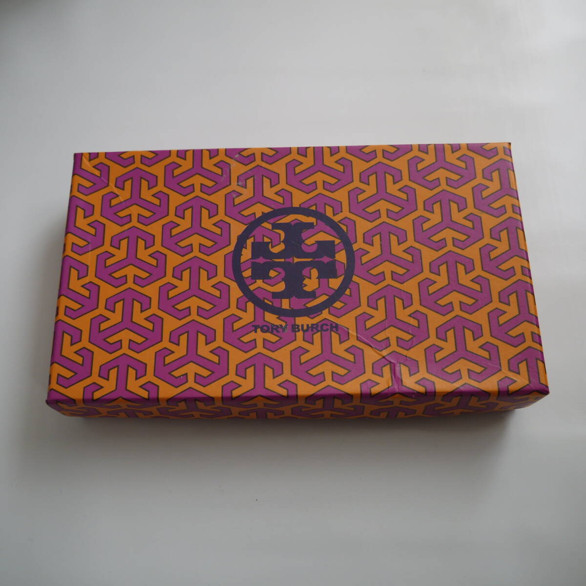 ◇ メイン開閉は、  ラウンドファスナー式 です。    ※ TORY BURCH ロゴ入り スティック型 金具 付きです。